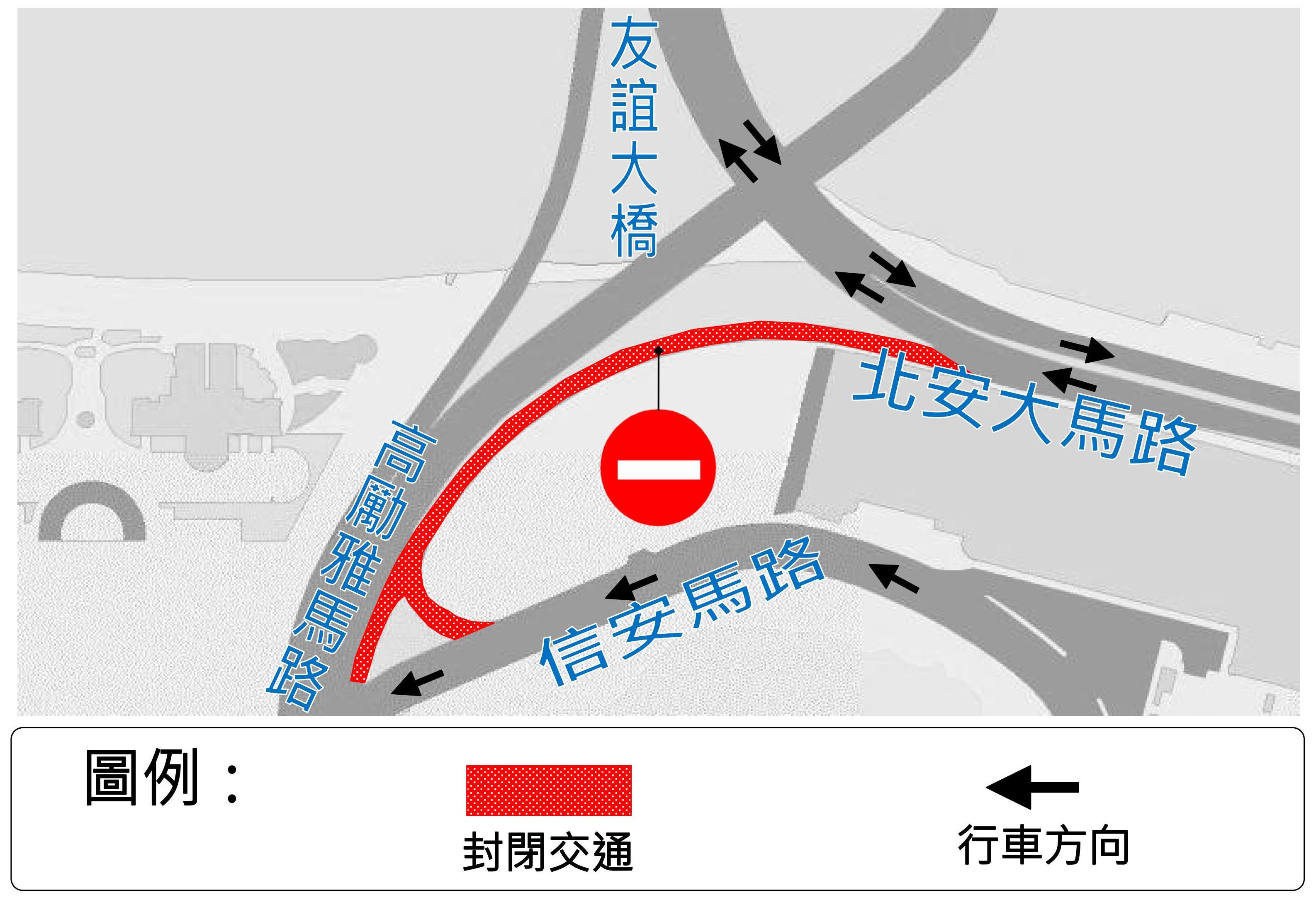 配合首階段工程進行,由本周二(4月5日)上午10時起,介乎永寧街與高勵雅馬路之間的一段氹仔北安大馬路實施封閉交通,經偉龍馬路往氹仔市區方向的車輛需改道信安馬路行駛。