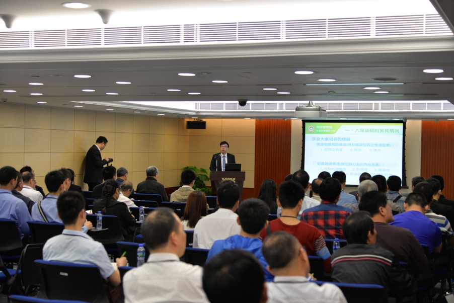 司法警察局舉行第四屆“物業管理業及管理機關大廈防罪知識培訓講座”,向業界講解近期住宅盜竊的情況,並提供最新的防罪資訊,以減少罪案的發生。