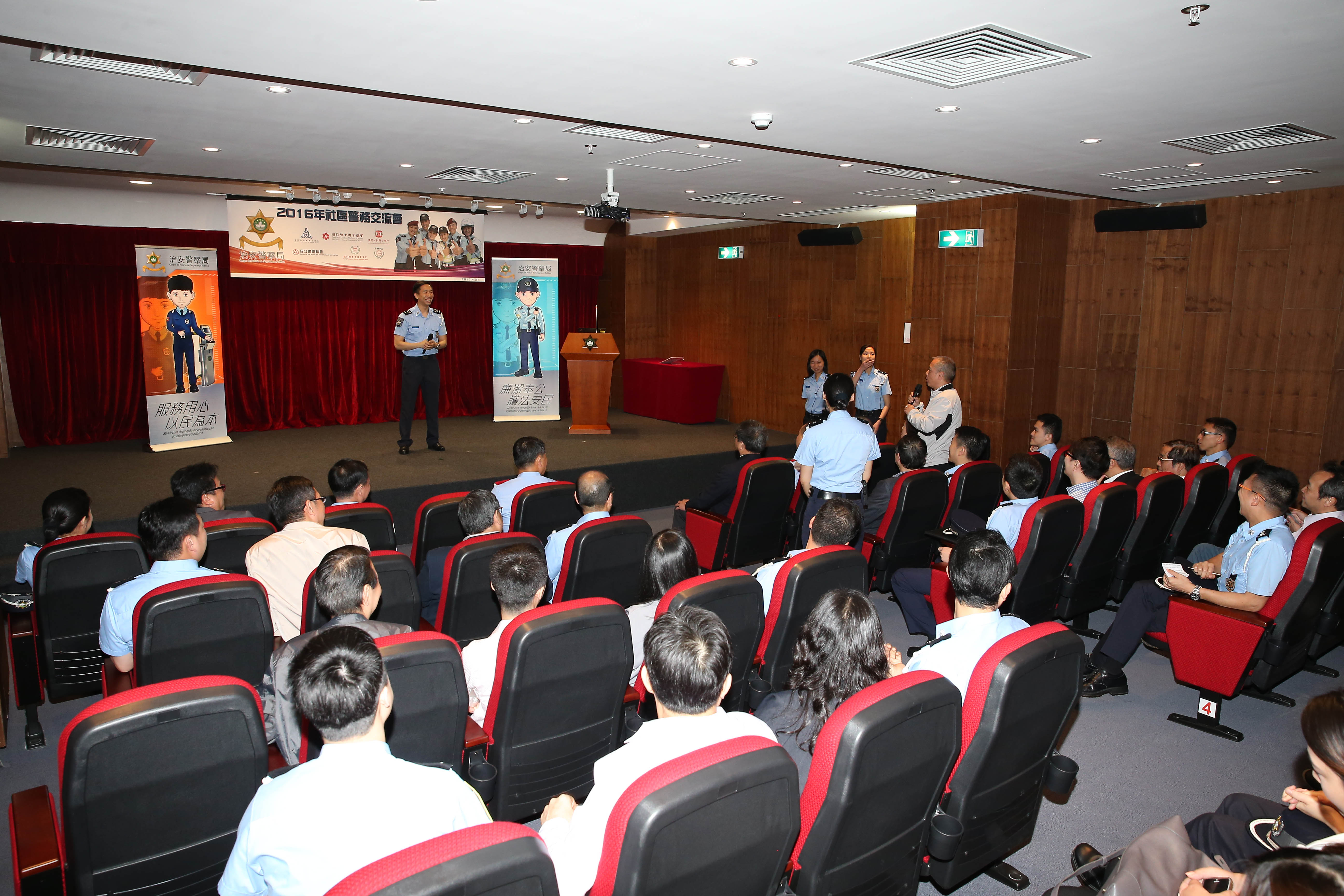 治安警察局(21日)下午舉辦“社區警務交流會”,來自六個社區團體(澳門街坊會聯合總會、民眾建澳聯盟、澳門物業管理業商會、澳門物業管理專業人員協會、澳門工會聯合總會、澳門婦女聯合總會)的代表及社區警務聯絡主任共六十多人,下午三時許抵達北安出入境事務廳,由梁文昌局長、吳錦華副局長,以及各警務單位多位主管熱情接待。