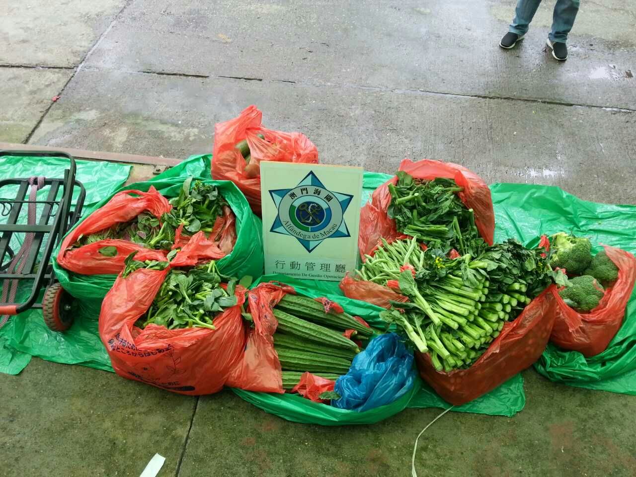 五一節假期間,為保障本地區食品安全,澳門海關日前聯同民政總署食品安全中心進行聯合巡查。期間在關閘一帶發現有人收集水客從內地帶回本澳的物品,然後送往本澳多間食肆及菜檔,兩部門隨即採取稽查行動,檢獲依法須受檢疫而未經檢疫進口的蔬果及醃製類等物品共重441公斤,全數交民政總署處理。