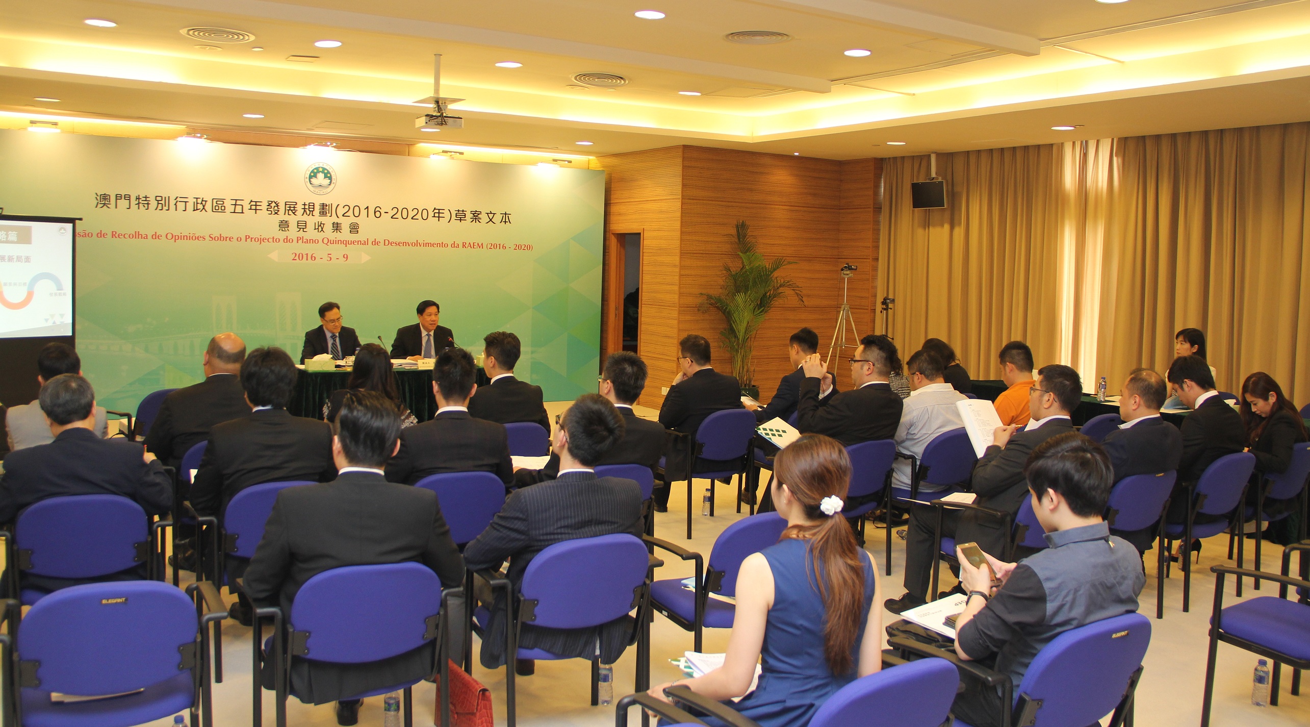 《澳門特別行政區五年發展規劃(2016-2020年)草案文本》於4月26日公佈並展開為期兩個月的意見收集工作。五年發展規劃是未來五年特區經濟社會發展的總體藍圖,是政府與廣大居民共同努力的行動綱領。因此,廣泛聽取社會各界意見、凝聚民智、匯合民力,對於五年發展規劃的制定和實施是相當重要的。為此,專責本次意見收集工作的政策研究室今日(9日)於政策研究室進行青年工商社團專場的意見收集會。