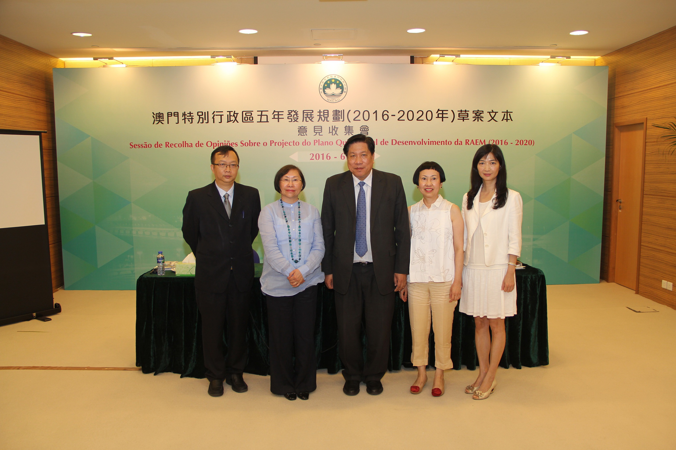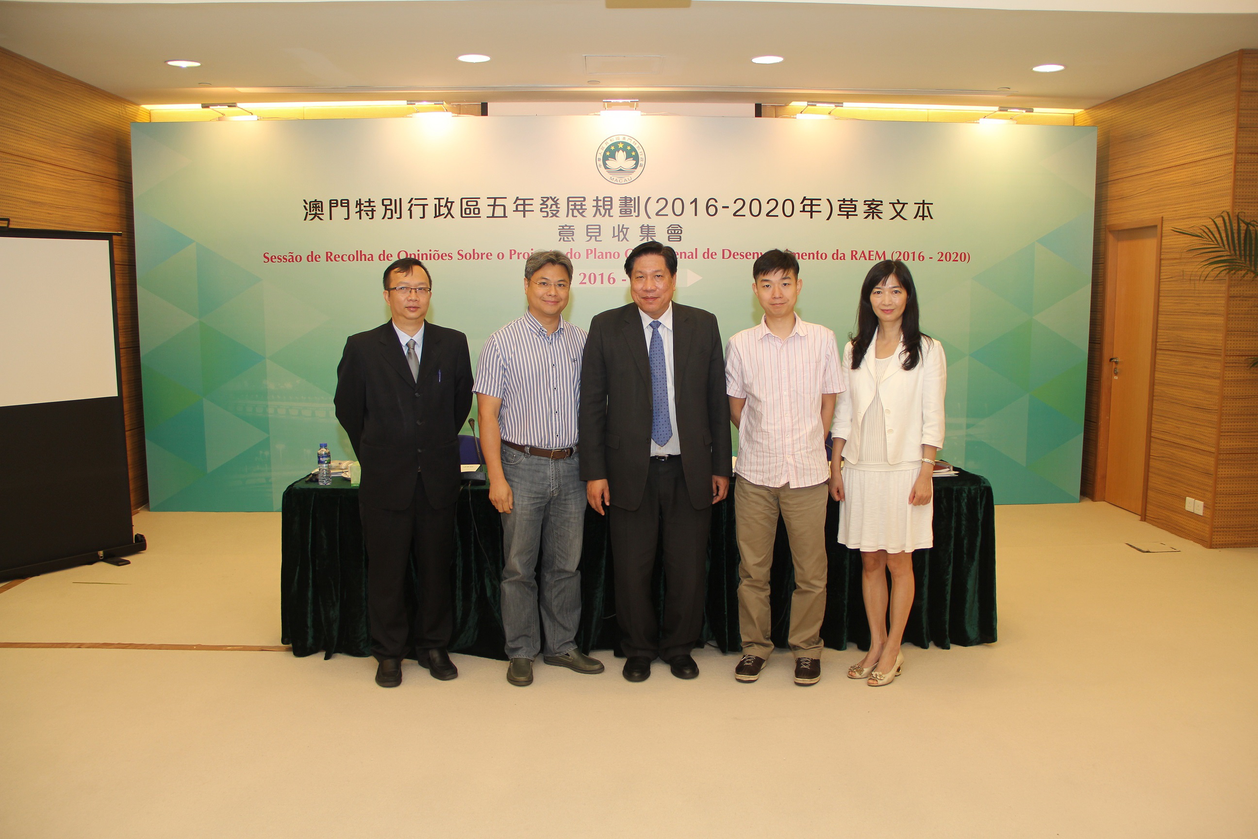 《澳門特區五年發展規劃(2016-2020年)草案文本》於4月26日公佈並展開為期兩個月的意見收集工作。五年發展規劃是未來五年特區經濟社會發展的總體藍圖,是政府與廣大居民共同努力的行動綱領。在編制過程中,得到國家發展和改革委員會規劃司、清華大學和澳門理工學院幾個顧問團隊的義務指導。