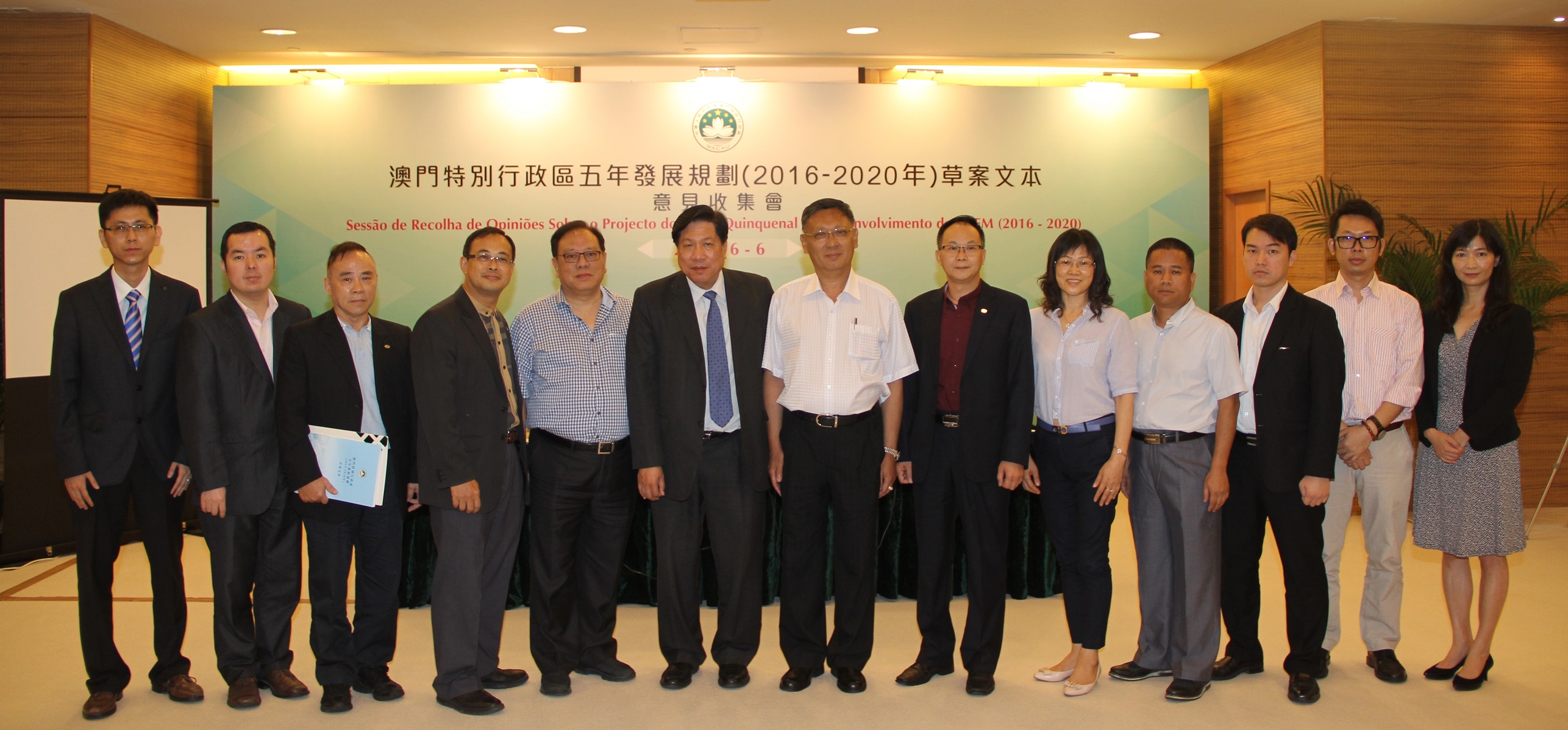 澳門房地產聯合商會、澳門地產發展商會、澳門中山同鄉聯誼會、澳門斗門同鄉總會共35名代表出席會議,並就五年發展規劃草案文本提出意見。