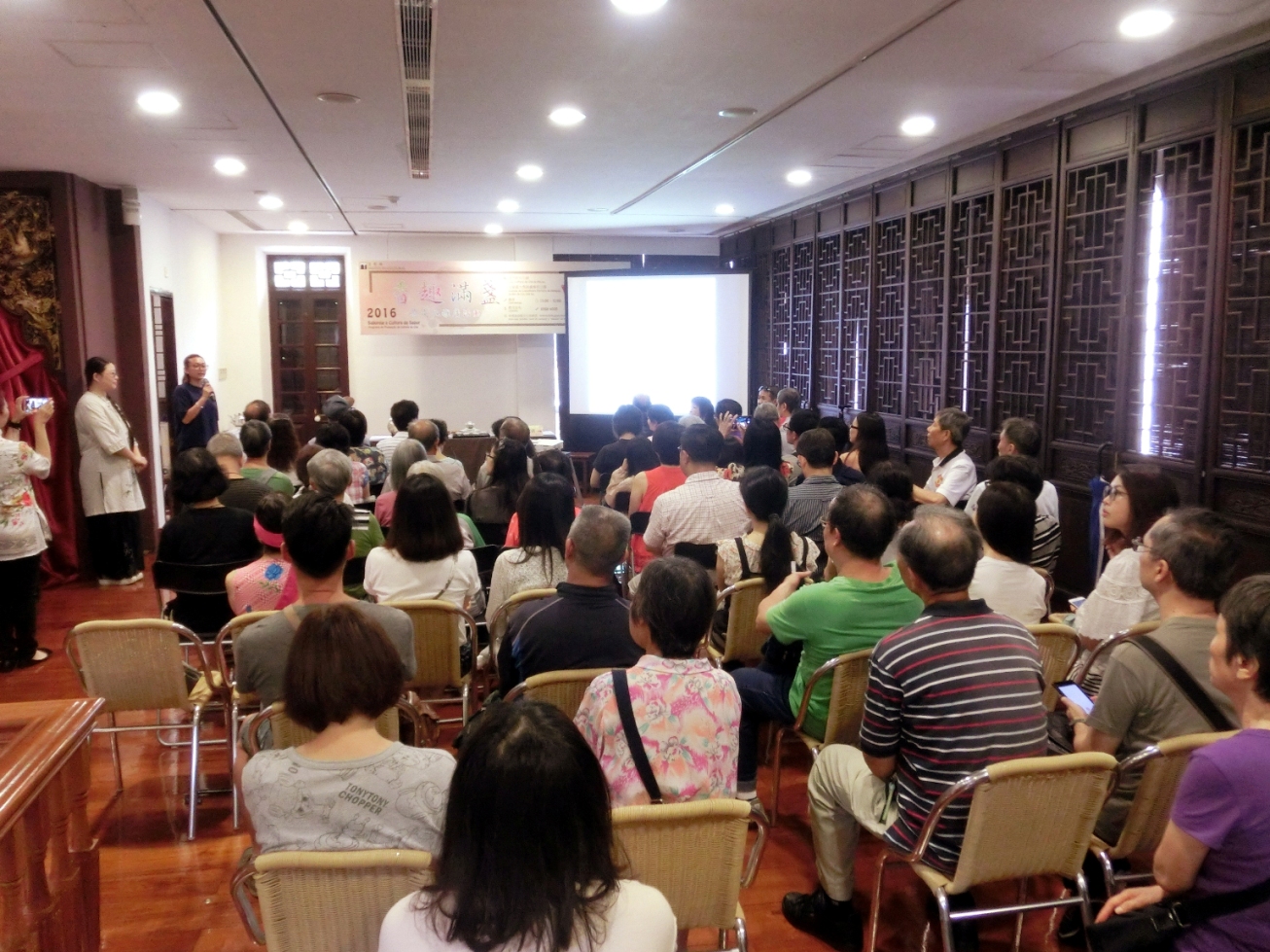由文化局主辦的二零一六年“香趣滿盞――茶文化推廣活動”(簡稱“茶會”)六月份的講座日前(六月十一日)於澳門茶文化館舉行,主題為“緊壓茶製作工藝”,由國家專業高級評茶師高文貞主持。講者介紹了普洱茶製成緊壓茶的原因和其外觀造型的由來,以及鑑定緊壓茶品質的方法。活動吸引約七十名公眾參與,氣氛熱烈。由於上期報名踴躍,文化局將於八月十三日再次舉辦“親子茶藝工作坊”,歡迎市民報名參與。
