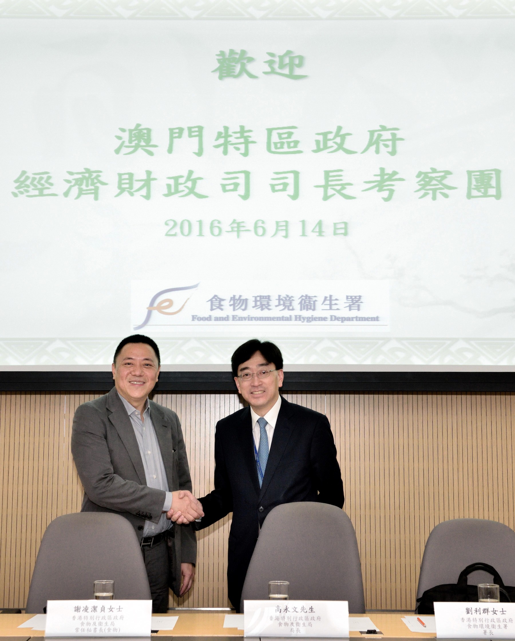 經濟財政司梁維特司長日前率團前往香港考察,了解當地的飲食場所發牌制度,聽取港方相關工作的成功經驗,期間實地考察兩家食肆的發牌檢查過程,希望以香港的成功經驗作為澳門完善相關發牌制度的參考。代表團抵港後獲食物及衛生局局長高永文、常任秘書長謝凌潔貞女士、食物環境衛生署、消防處、屋宇署等多個部門主管熱情接待,並隨即進行業務交流。