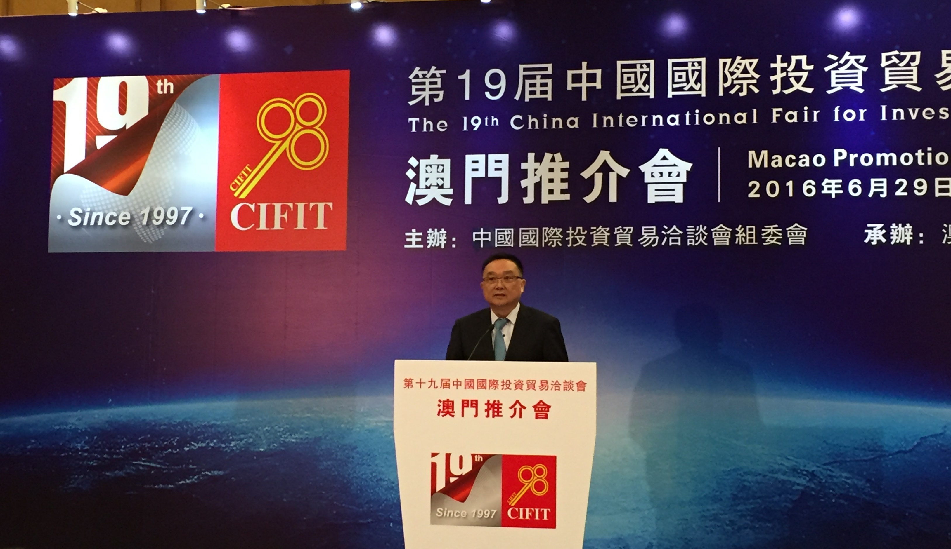 由國家商務部主辦,澳門特別行政區作為成員單位之「第19屆中國國際投資貿易洽談會(投洽會)」將於2016年9月8至11日在福建省廈門市舉行。澳門貿易投資促進局主席張祖榮出席「第19屆投洽會香港推介會」時表示,澳門作為投洽會「主賓區」,將於活動期間舉辦「活力澳門推廣周」等一系列精彩活動,促進中國內地、澳門與葡語國家的企業交流和合作,實現澳門中小企業「走出去」的理念。