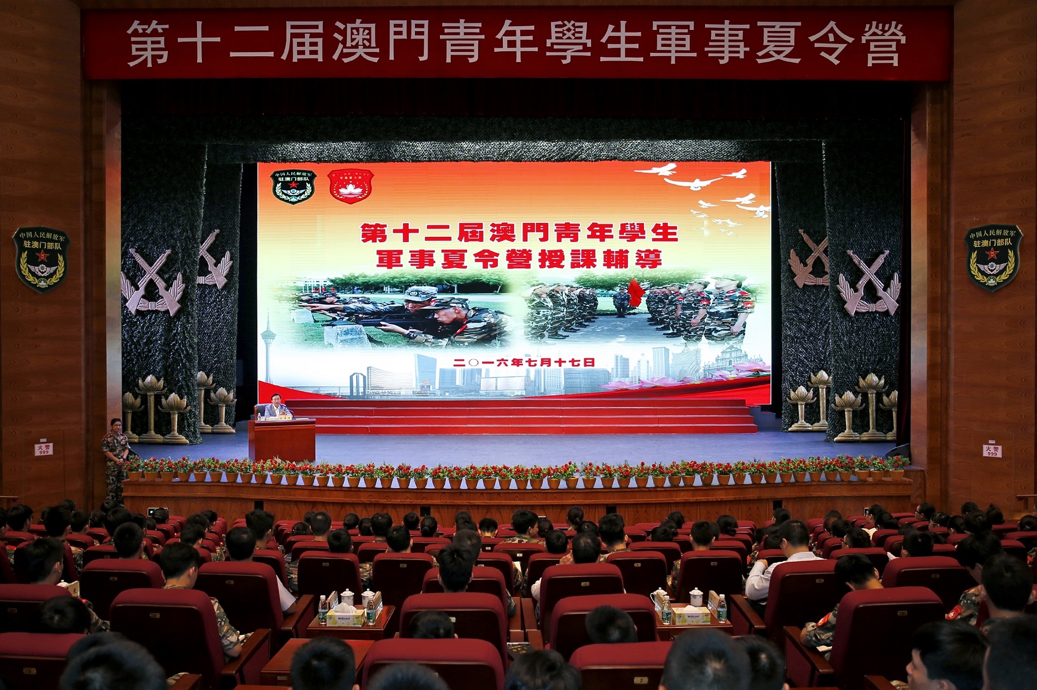 社會文化司司長譚俊榮今(17)日應邀赴駐澳部隊氹仔軍營出席第十二屆澳門青年學生軍事夏令營訪談交流活動,勉勵學生以軍人為榜樣,養成良好的生活習慣,刻苦鍛煉,奮發向上。