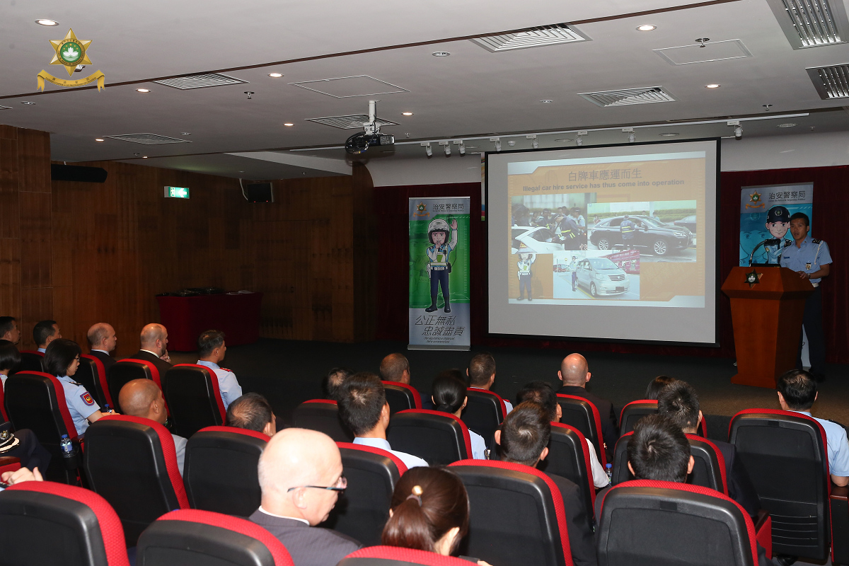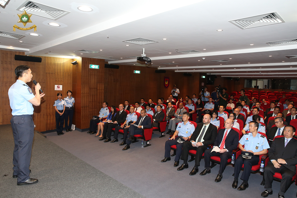接著由澳門警務廳、海島警務廳、交通廳、情報廳及出入境事務廳的代表就整體治安形勢進行工作簡報,介紹跟酒店業息息相關的治安及交通等情況。隨後進入交流環節,各酒店業代表積極發言,紛紛就預防及打擊酒店周邊範圍可能出現的犯罪情況提出問題,直抒己見,互動氣氛熱烈並大大增進了警民關係。與會者之後移步至餐室共同茶敍及進一步交流。
