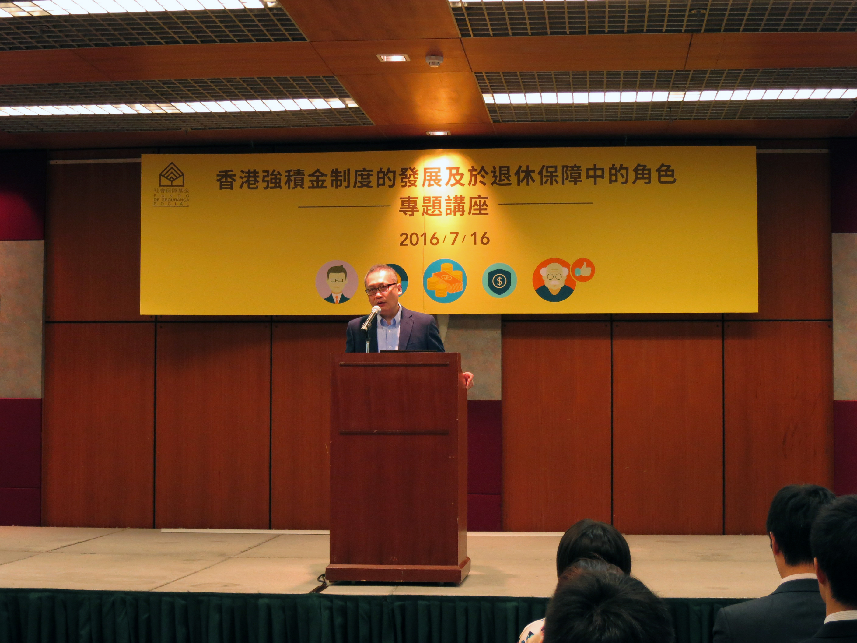 由社保基金主辦,“香港強積金制度的發展及於退休保障中的角色”專題講座於本月16日假旅遊活動中心舉行,香港強制性公積金計劃管理局代表陳安定擔任主講嘉賓。講座吸引近90位觀眾出席,包括銀行及金融業界專家、從業員、學者及社團人士。