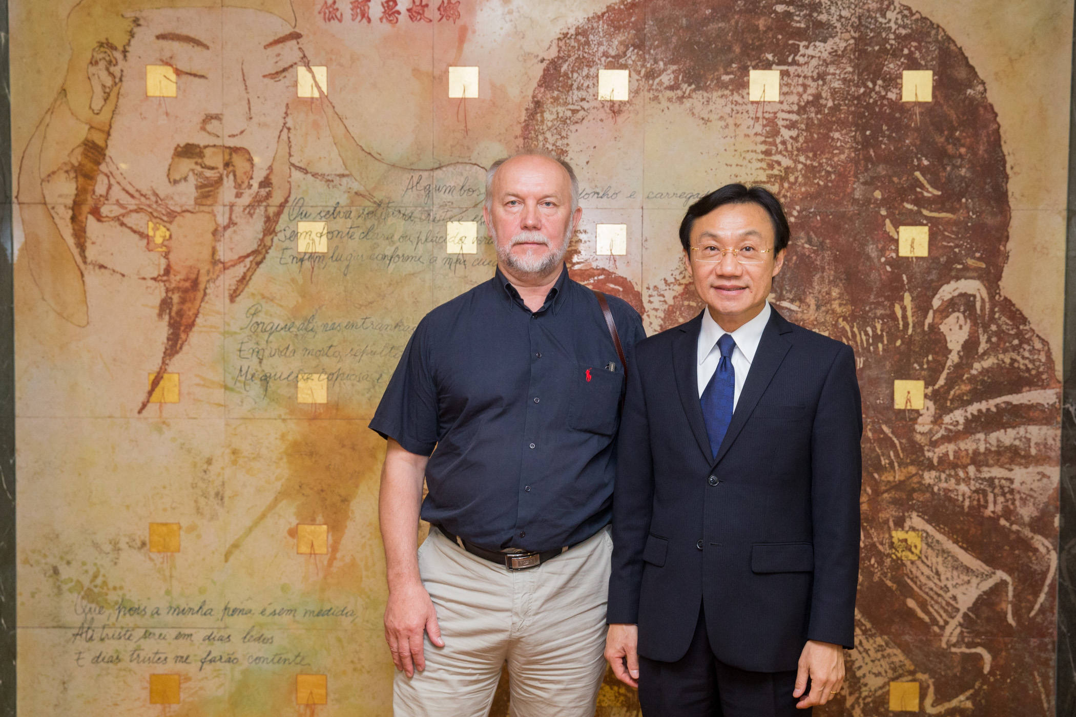 亞歷山大•邱文應澳門美術協會邀請,來澳出席該協會成立60周年的系列活動。他是俄羅斯聖彼得堡列賓美術學院教授、油畫系主任,俄羅斯聯邦功勳藝術家。澳門日報社長陸波,澳門美術協會會長黎鷹、副會長陸曦參加會見。