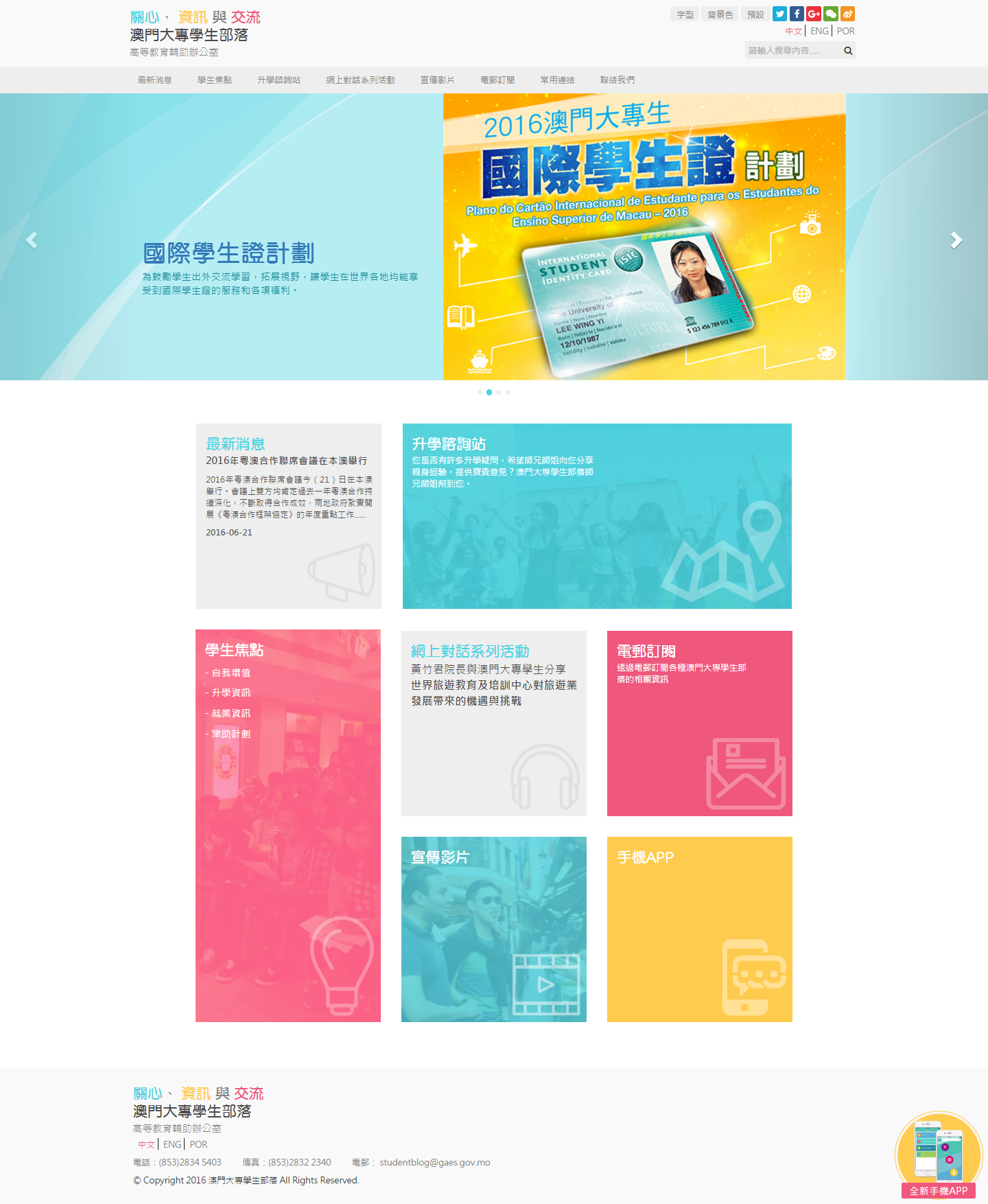 高等教育輔助辦公室今日(29日)正式推出全新設計的澳門大專學生部落網頁(https://studentblog.gaes.gov.mo),以嶄新面貌發放與大學生和準大學生息息相關的各類最新資訊。