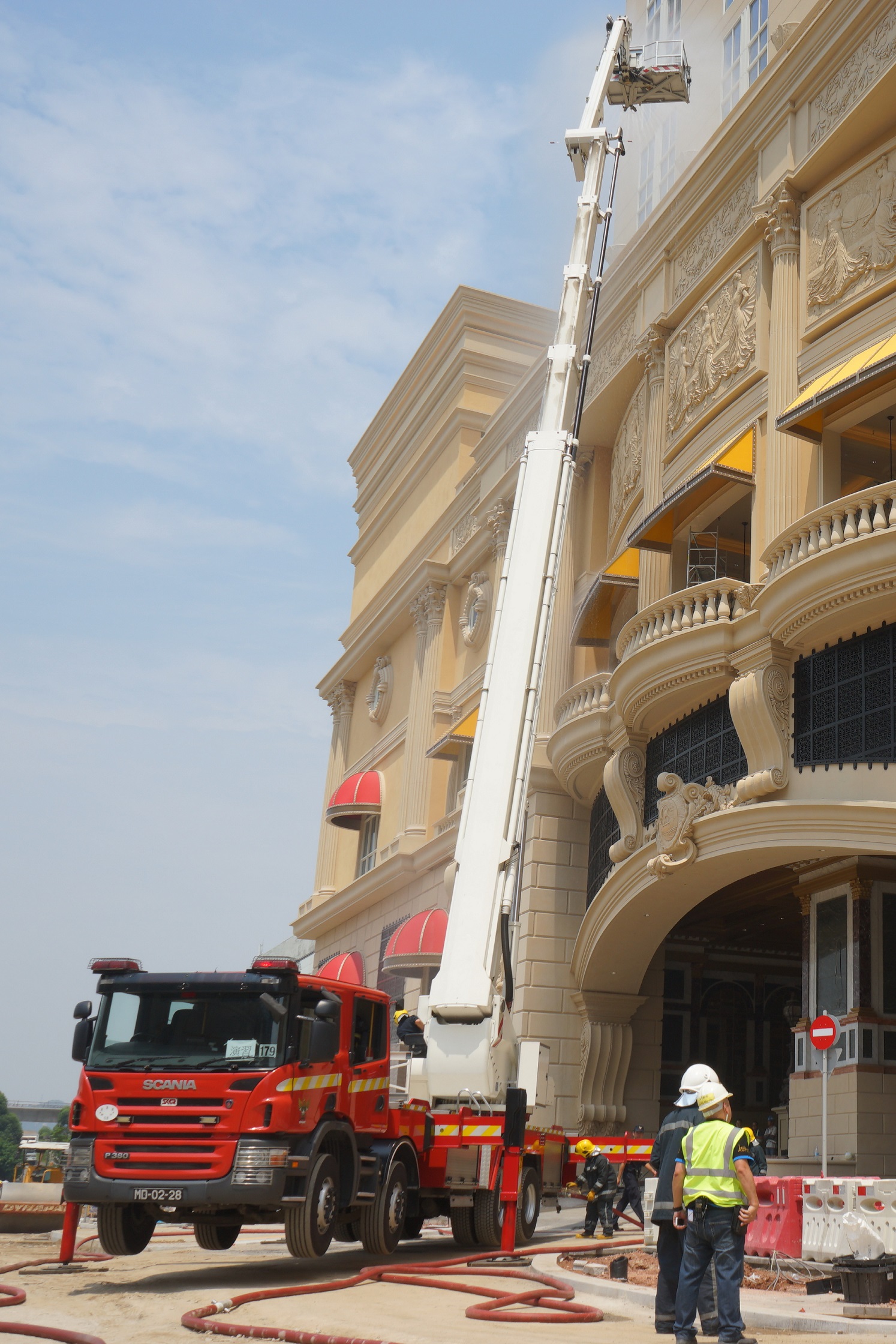 為加強消防局與巴黎人在發生事故時的應變措施及協調溝通能力,消防局於本年8月29日上午,與巴黎人酒店聯合舉行了一次火警疏散演習。
