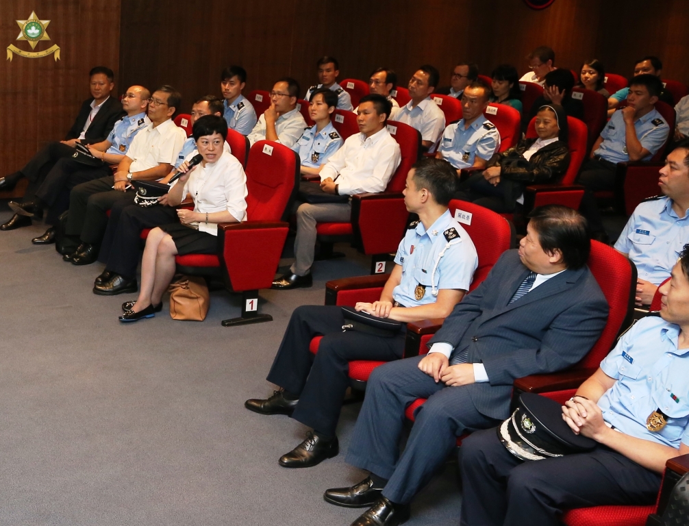治安警察局(13日)舉辦「警-校聯絡機制交流會」,澳門中華教育會陳虹理事長、澳門天主教學校聯會郭華邦理事長以及來自53間學校,合共57名代表於約下午三時抵達北安出入境事務廳,受到關啓榮代副局長及各警務單位多位主管熱情接待。