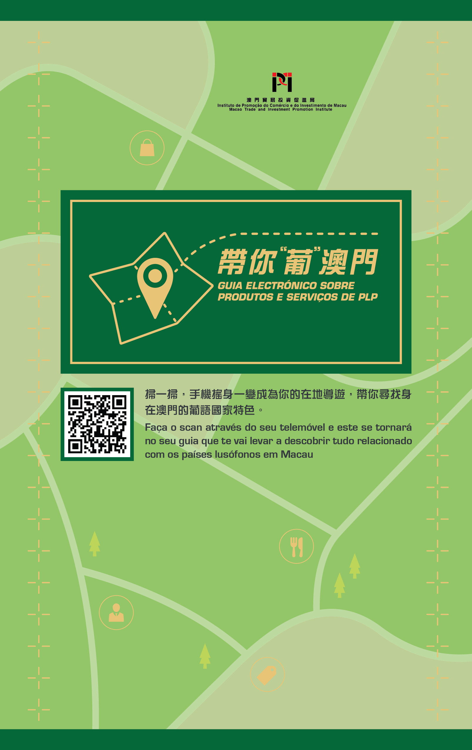 葡語國家食品展示中心已於今年3月31日投入運作,是澳門發揮中國與葡語國家商貿合作服務平台作用的線下實體店,為本澳市民、客商及遊客提供一個認識葡語國家飲品及食品的地點,助有意創業及從事中國與葡語國家的企業拓展商機,展示中心所出版的《帶你 “葡” 澳門》指南,歡迎從事葡語國家產品貿易之企業加入成為商號。該指南可在澳門貿易投資促進局轄下不同的辦事處及展覽會內索取,詳情可致電2870 0620 或掃描二維碼立即體驗。