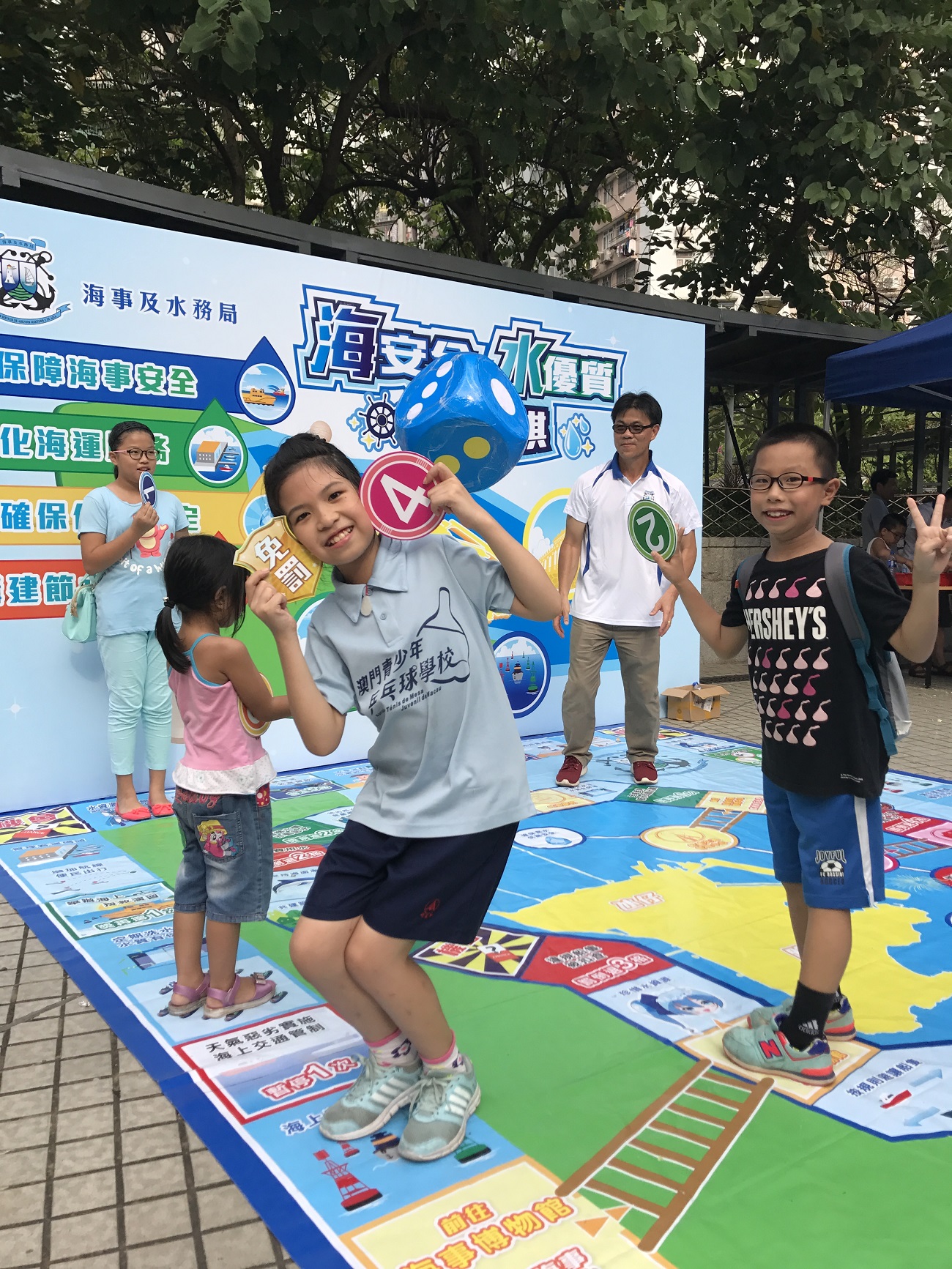 今日下午二時半至五時半,小組假祐漢街市公園舉辦“社區節水巡禮”活動,現場除了展出節水器具以及樓宇自來水系統模型,還有多個以節約用水、認識鹹潮和維護管理樓宇自來水系統為主題的攤位遊戲和工作坊,更設有“海安全‧水優質”真人版遊戲棋,遊戲獎罰分明、路線峰迴路轉,玩樂之餘還可以學到水資源知識和節水方法,吸引了眾多小朋友參與。此外,深受小朋友喜愛的“威水超人”和“水汪汪姐姐”更在活動現身和大家玩節水遊戲和派禮物,吸引了眾多家長和小朋友踴躍參與。