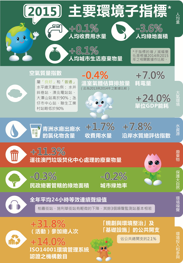 • 《澳門環境狀況報告2015》2015年主要環境子指標較2014年變化狀況