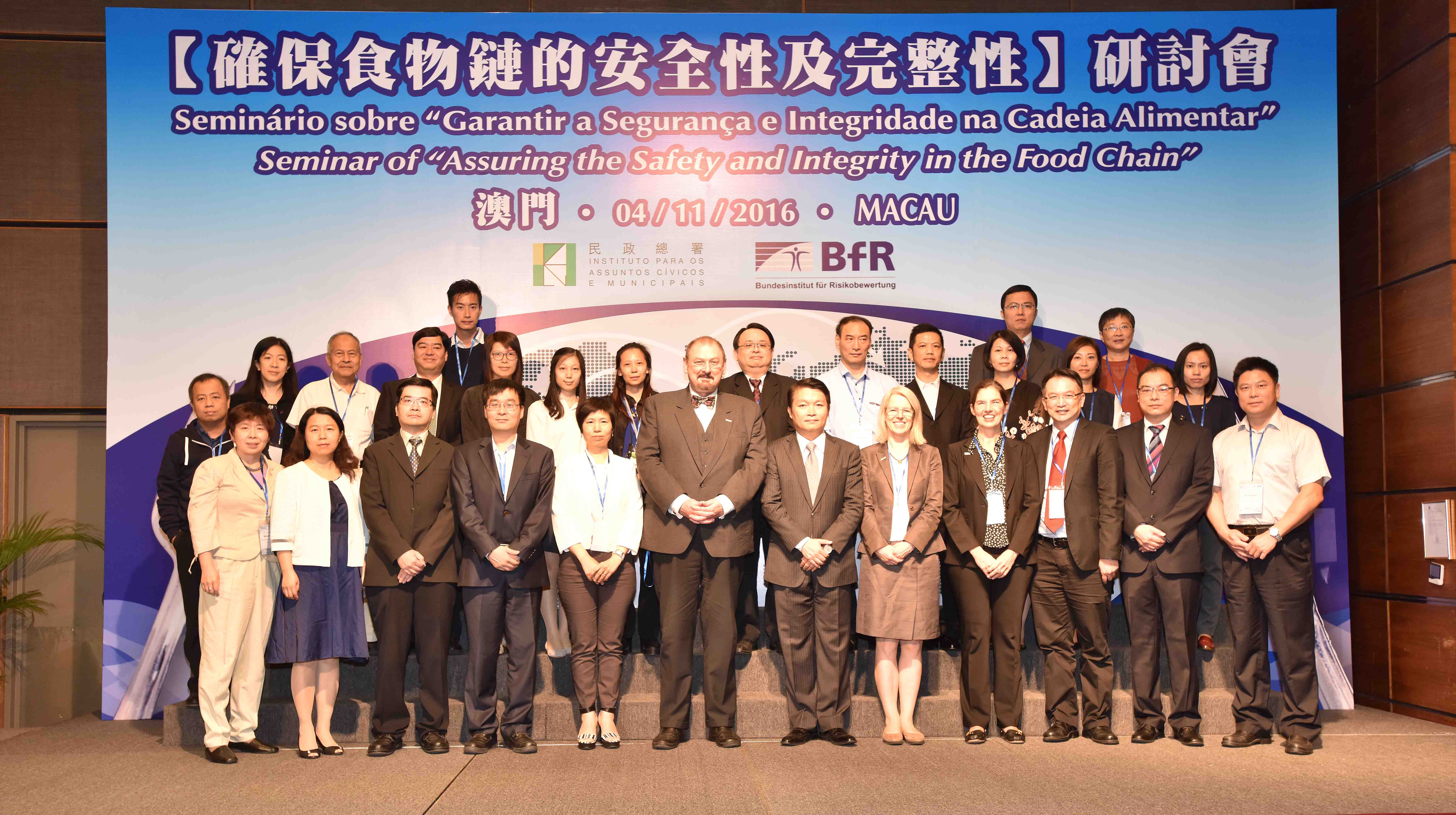 本次研討會邀請了德國聯邦風險評估研究所所長Andreas Hensel、主任Christine Müller-Graf、博士Anja Buschulte、香港漁農自然護理署檢驗及檢疫分署助理署長薛漢宗、香港食物安全中心高級醫生周楚耀、中國廣東出入境檢驗檢疫局食品安全監管處副處長王麗霞、中國廣州出入境檢驗檢疫局衛生與食品檢驗檢疫處副科長羅柳慈、中國食品發酵工業研究院標準資訊研發部副主任鍾其頂、澳門民政總署食物衛生檢驗處處長鮑志賢擔任主講嘉賓。分別圍繞食品欺詐、鑒定檢測技術、各地的監管體系、風險評估與食品溯源等議題進行分享及討論,透過跨領域對話,促進持分者致力完善食品供應鏈的安全性與完整性。