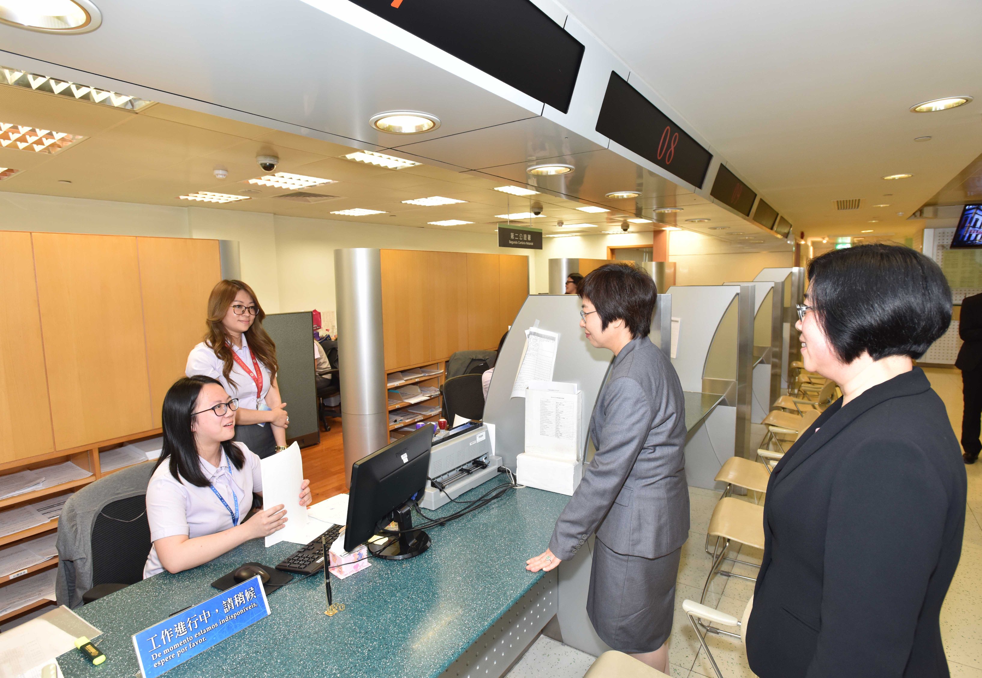 在巡視期間,陳司長與現場多名市民親切交流,聽取他們使用公共服務的意見。她又與前線的主管和工作人員互動交談,瞭解他們的日常工作情況,以及在工作中面對的困難和挑戰。陳司長肯定了部門和同事所取得的工作成果,並勉勵各人繼續堅持服務市民的精神,配合特區政府精兵簡政的施政方向,加快推動各項服務實現全面電子化及簡化流程,以回應社會發展及市民的訴求。
