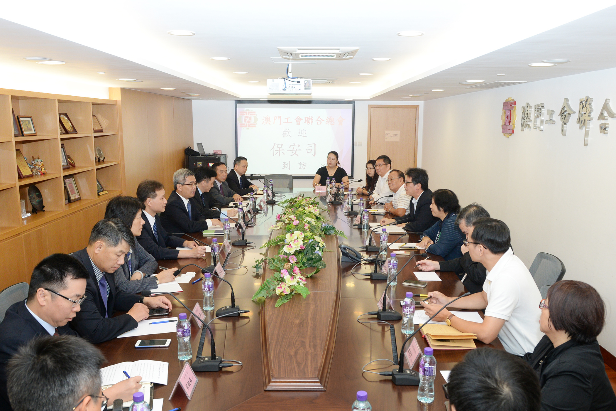 保安司司長黃少澤早前率領轄下多位官員,先後拜訪了澳門婦女聯合總會、澳門街坊會聯合總會、澳門工會聯合總會和澳門歸僑總會等社團,聽取和收集各與會人士對保安範疇施政的意見和建議,分別獲婦聯賀定一會長、街總梁慶球會長、工聯何雪卿會長、僑總劉藝良會長及一眾社團主要成員的熱情接待。會面氣氛熱烈,保安當局與各社團進行深入交流,取得了豐碩成果。