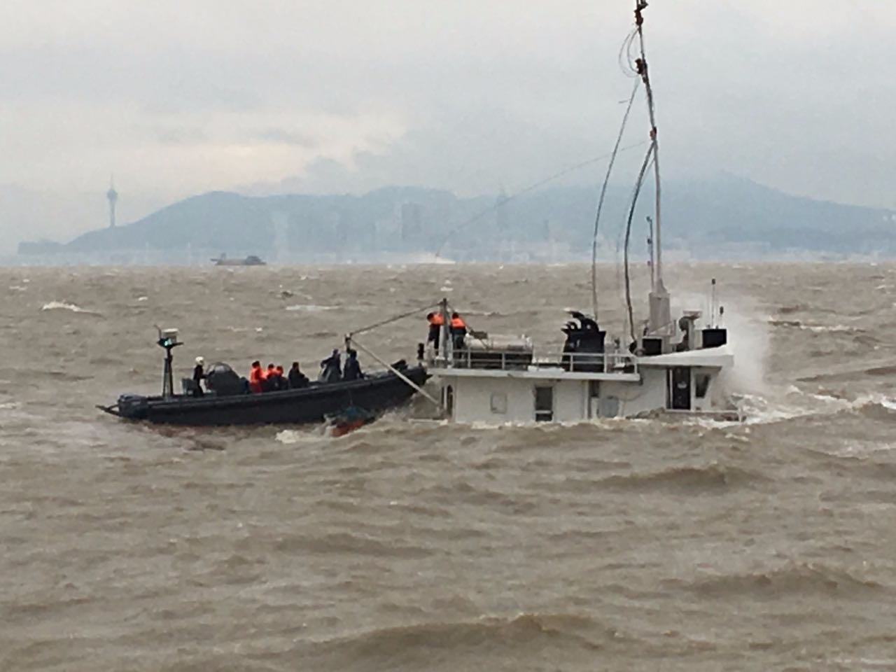 事故現場風浪很大,風力達六級,浪高2.5米至3米,加上肇事船隻已幾乎完全沉沒,增加了救援工作的難度,海關快艇及潛水人員經過個多小時努力,最終成功救起肇事船隻的6男1女船員。
