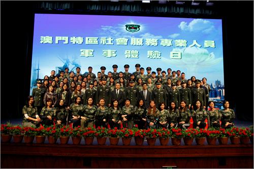 在中央人民政府駐澳門特別行政區聯絡辦公室的支持下,社會工作局聯同解放軍駐澳部隊組織了60多名,來自本澳政府部門和民間機構的社會服務專業人員,於11月28日來到解放軍駐澳部隊軍營,進行了一日的軍事體驗活動。
