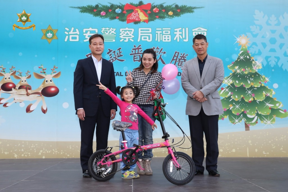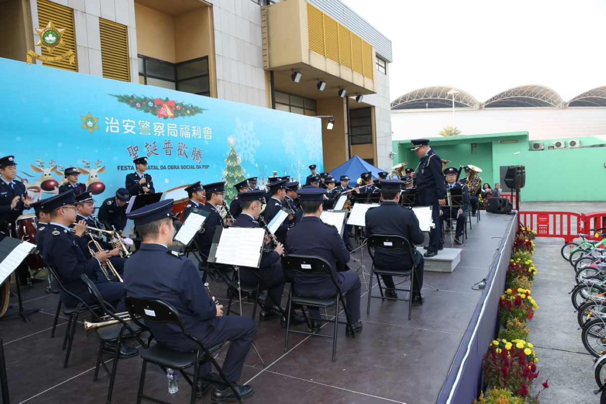 為歡度聖誕佳節,治安警察局福利會於本月10日在特警隊總部舉辦聖誕聯歡會。保安司黃少澤司長、警察總局馬耀權局長、保安司司長辦公室張玉英主任、治安警察局梁文昌局長及各部門主管等應邀擔任主禮嘉賓,與約二千名治安警察局人員、退休警務人員及家屬共慶佳節,會場設遊戲攤位和抽獎環節等,同時安排聖誕老人助慶,向小朋友派發禮品,讓節日增添濃厚氣氛。