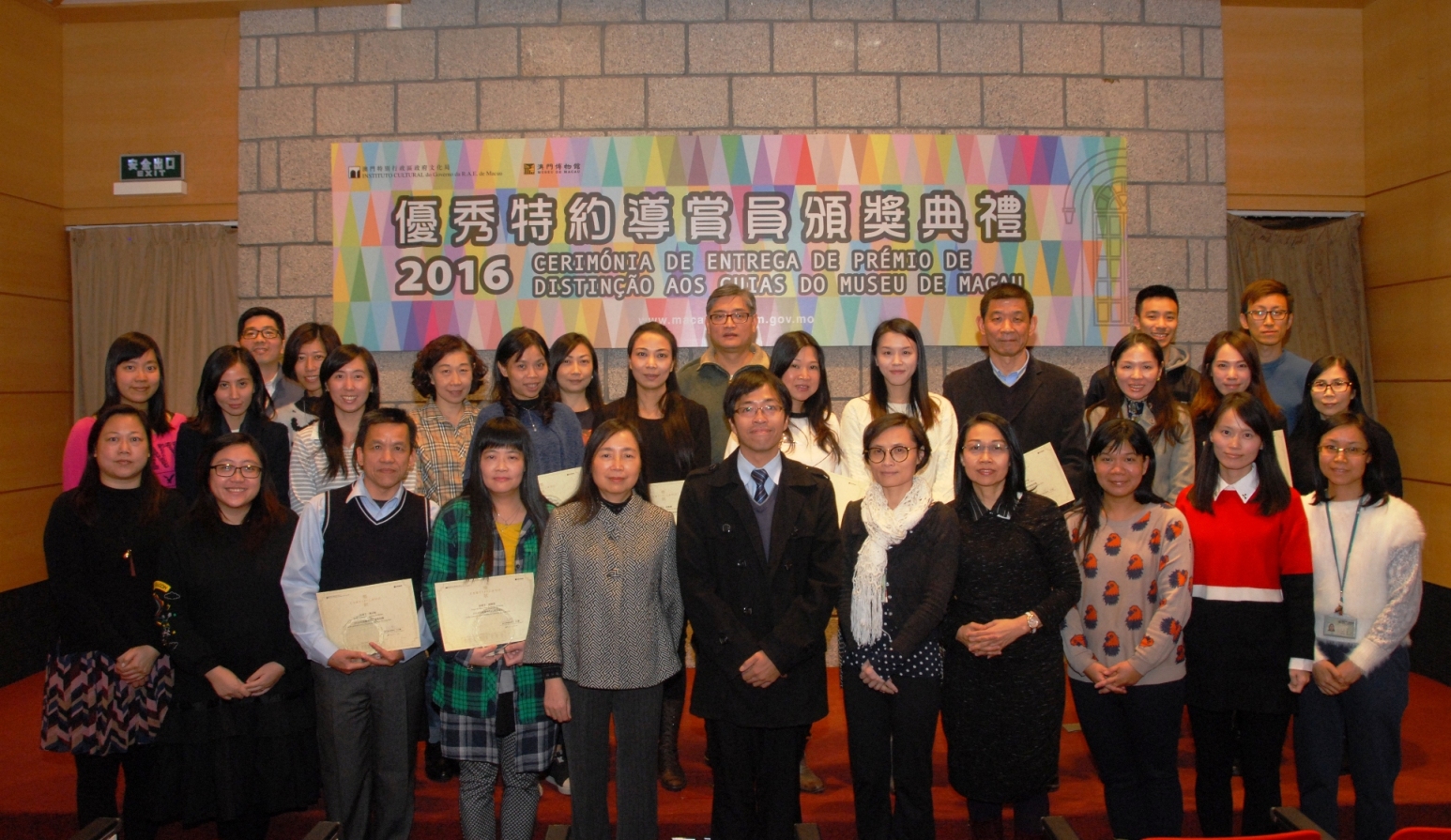 文化局澳門博物館於日前(十二月十六日)舉辦 “二零一六年度優秀特約導賞員頒獎典禮”,向本年度為澳門博物館提供社會服務的優秀特約導賞員頒發獎項,藉此鼓勵長期為公眾和學校教育作出卓越貢獻的特約導賞員。