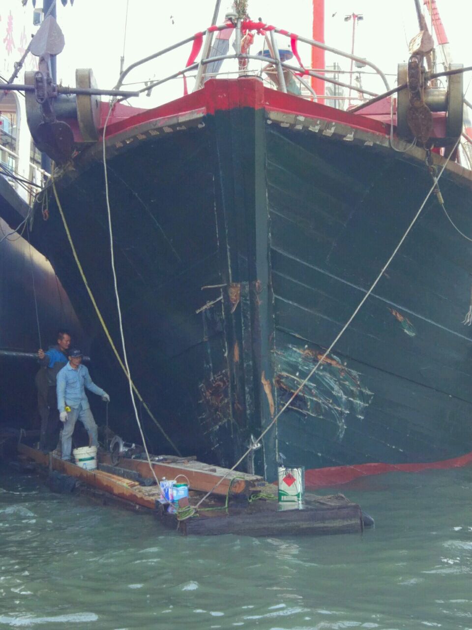 肇事貨船碰撞後在船頭位置出現破洞,並有入水和下沉的情況,船頭位置現時正擱淺在往內港航道旁,海事及水務局與海關的船隻在現場戒備。貨船船主已安排本公司另一貨船前往現場協助過駁貨物。為免肇事船隻進一步下沉,海事局船隻協助肇事船隻駛離航道邊往淺處靠泊,並在現場戒備,以監督過駁作業的進行。而肇事漁船則沒有即時危險,已駛至內港28號碼頭停泊以接受檢驗和調查。