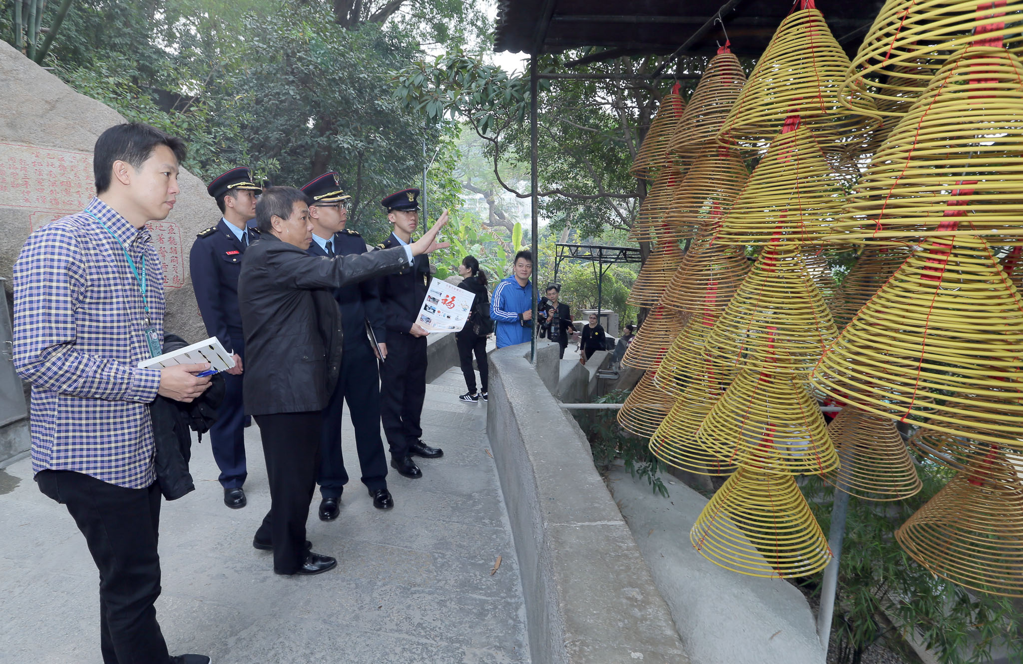 是次巡查由文化局文化遺產保護處代處長蔡健龍、消防局防火廳設計圖分析處代處長林俊生參與,檢查廟宇消防設備,提醒廟宇管理者注意消防安全,派發宣傳海報與單張,並現場講解“廟宇室內香火禁止過夜,夜間必須關閉電源”措施,以加強管理人員的防火安全意識。