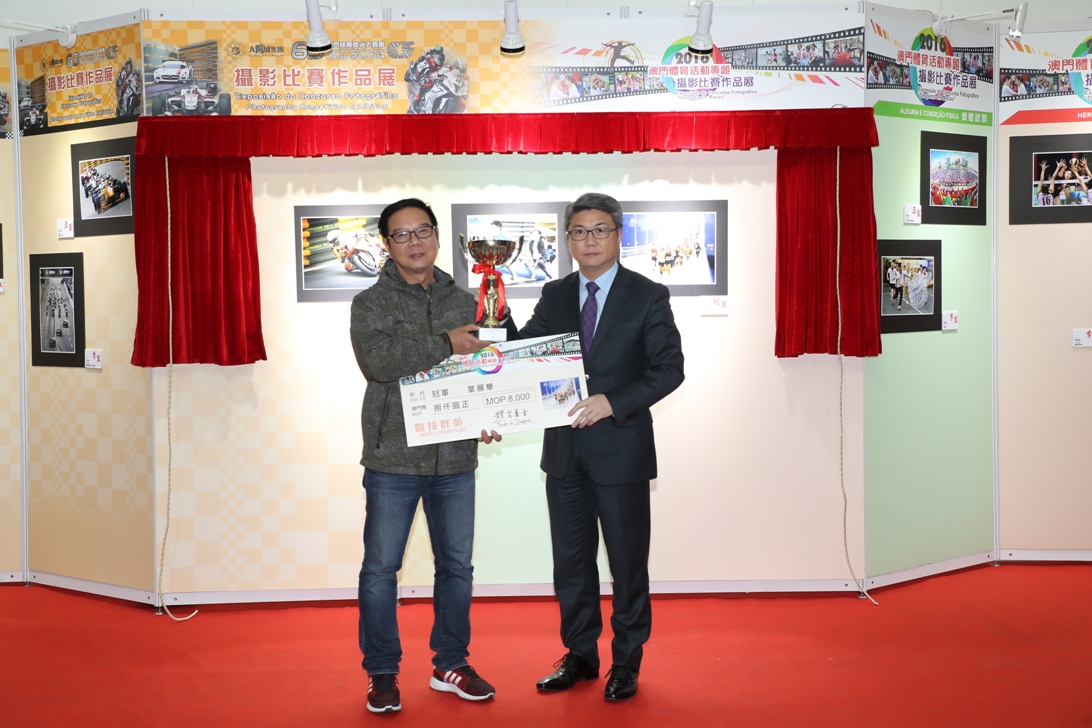 作品展於今日(13日)下午六時半在塔石體育館大堂開幕,出席的嘉賓包括:體育局局長潘永權、澳門攝影學會會員大會副主席歐平、副局長劉楚遠、副局長林蓮嬌、澳門攝影學會會員大會副主席馬志信、教育暨青年局袁凱清廳長、中國澳門體育暨奧林匹克委員會主席盧景昭、體育委員會委員:區志煒、陳鈞輝、鄭國恆、林錦洪、關偉霖、梁忠靈、吳日安及吳嘉婷。作品展期至本年三月十九日,歡迎市民參觀。而上述各項比賽的頒獎儀式,亦於今日在塔石體育館大堂進行,獲獎名單如下: