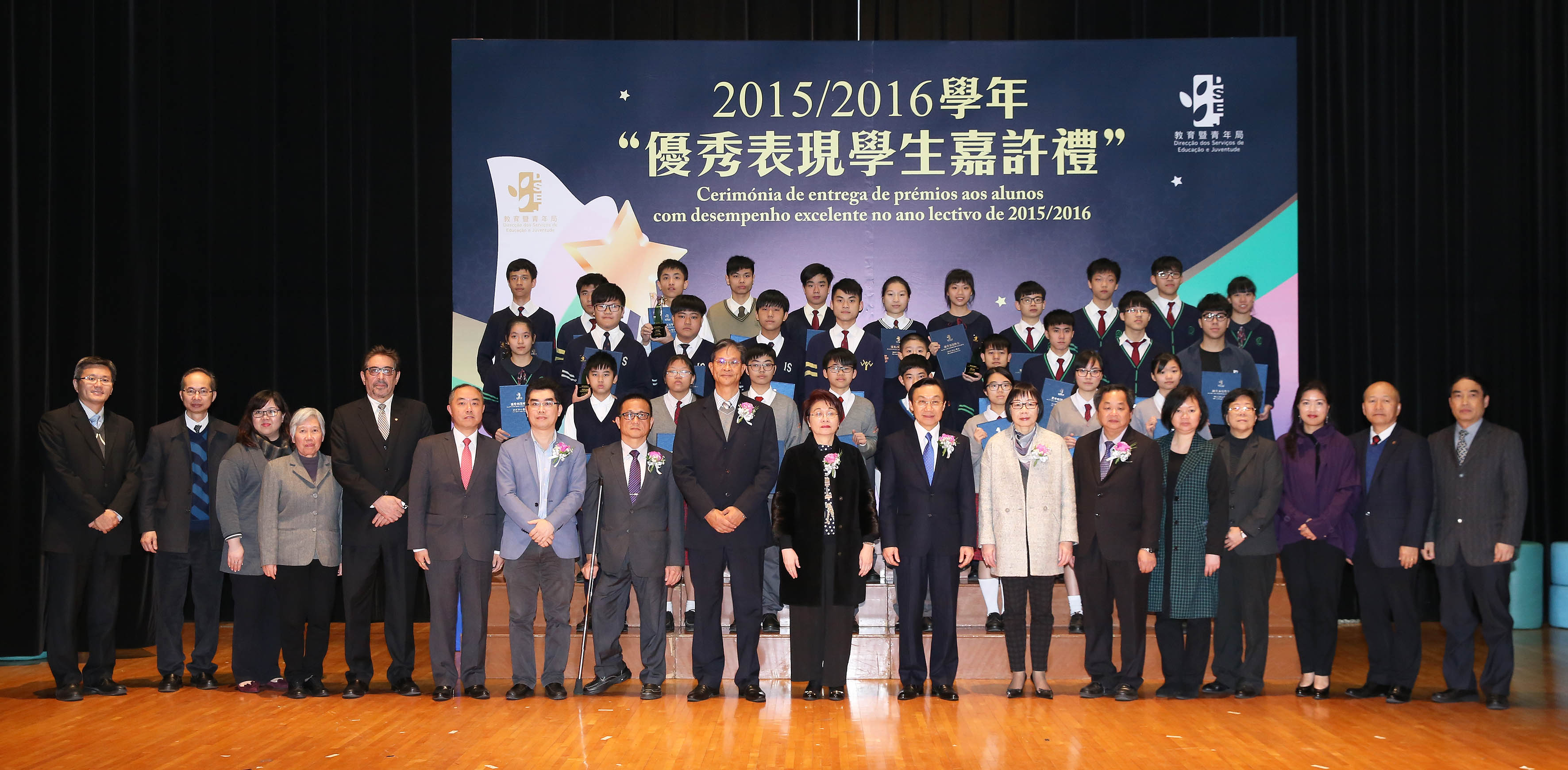 為表揚優秀表現的學生,鼓勵他們積極學習,爭取佳績,提升素質,傳揚積極向上的精神,教育暨青年局於2017年2月23日下午5時在中葡職業技術學校舉行首屆(2015/2016學年)優秀表現學生嘉許禮,嘉許該學年參加地區性和國際性活動或比賽榮獲佳績的學生。典禮由社會文化司司長譚俊榮主持並向優秀學生頒授“優秀表現學生”榮譽;出席典禮的還包括教青局局長梁勵、社會文化司司長辦公室顧問惠程勇及林曉白、教青局副局長郭小麗及主管人員,澳門中華教育會、澳門天主教學校聯會、澳門公職教育協會的代表,非高等教育委員會委員,以及學校領導、教師、獲嘉許的學生及其親友等共約二百五十人。