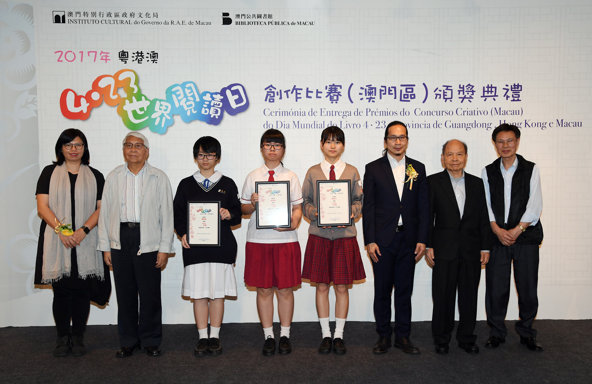 由澳門公共圖書館、香港公共圖書館、廣東省立中山圖書館及深圳圖書館,聯合舉辦二零一七年粵港澳“4.23世界閱讀日創作比賽”頒獎禮暨得獎作品展今日(四月二十九日)下午三時在舊法院大樓舉行,得奬作品由即日起至五月三十一日於何東圖書館地下多功能廳展出,歡迎市民到場分享學生的喜悅與創意。