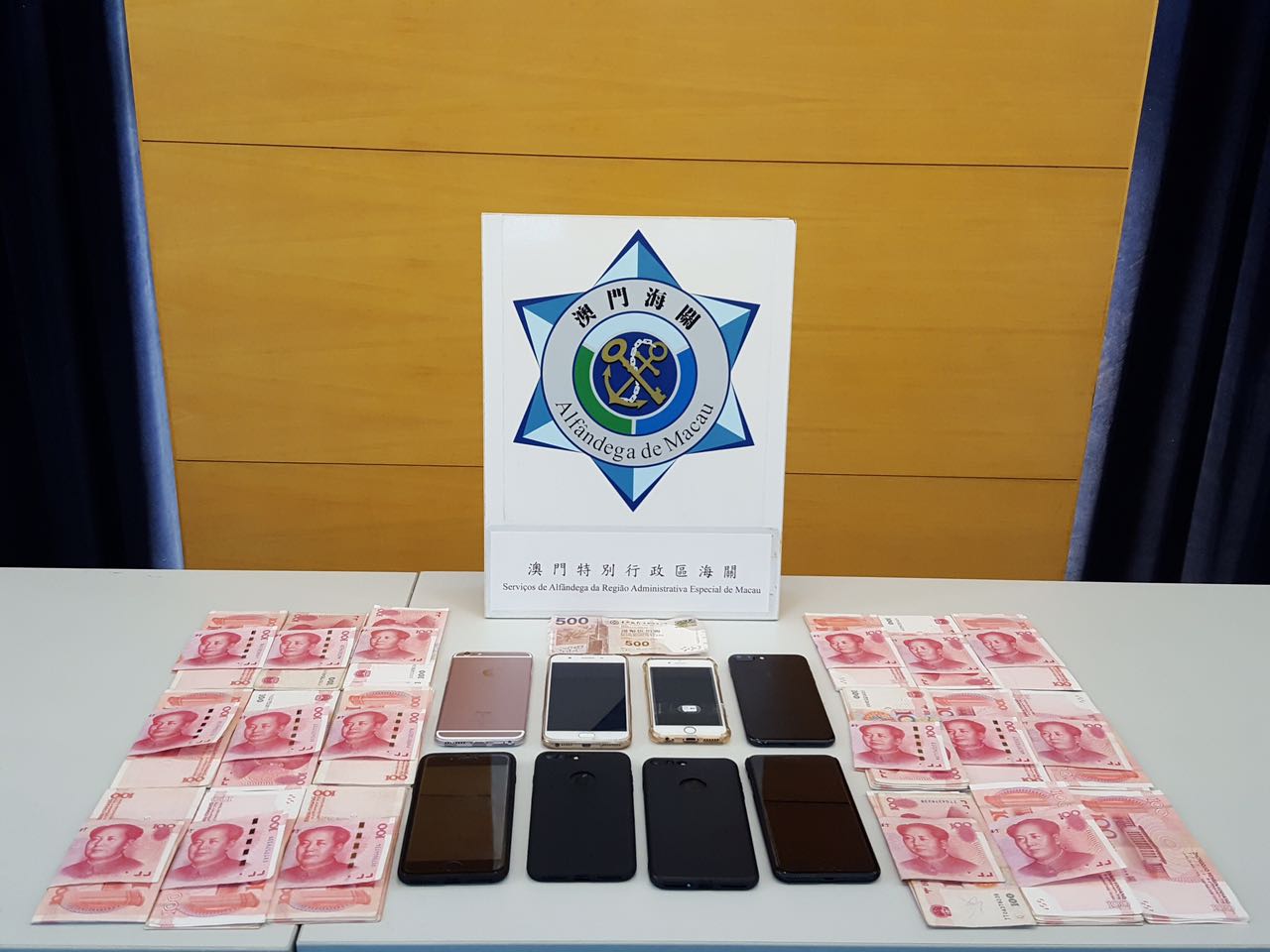 海關接報後,隨即展開調查工作。至本月十一日,海關便衣關員在義字街巡查時,發現一名男子手持一部電話不斷向途人兜售,關員隨即表明身份,在該名男子身上搜出兩部懷疑假冒「IPHONE」商標的手提電話。與此同時,治安警出入境事務廳根據舉報者提供的資料,於十二日中午在關閘口岸截獲該名向舉報者售賣冒牌手提電話的涉案者,並於當日送交海關跟進,關員在該名嫌犯身上再發現兩部懷疑假冒「IPHONE」商標的手提電話及一萬多元現金,懷疑是非法所得的金錢。被海關扣查的合共六部手提電話,經品牌權利人代表鑑定,確認全部為假冒產品。