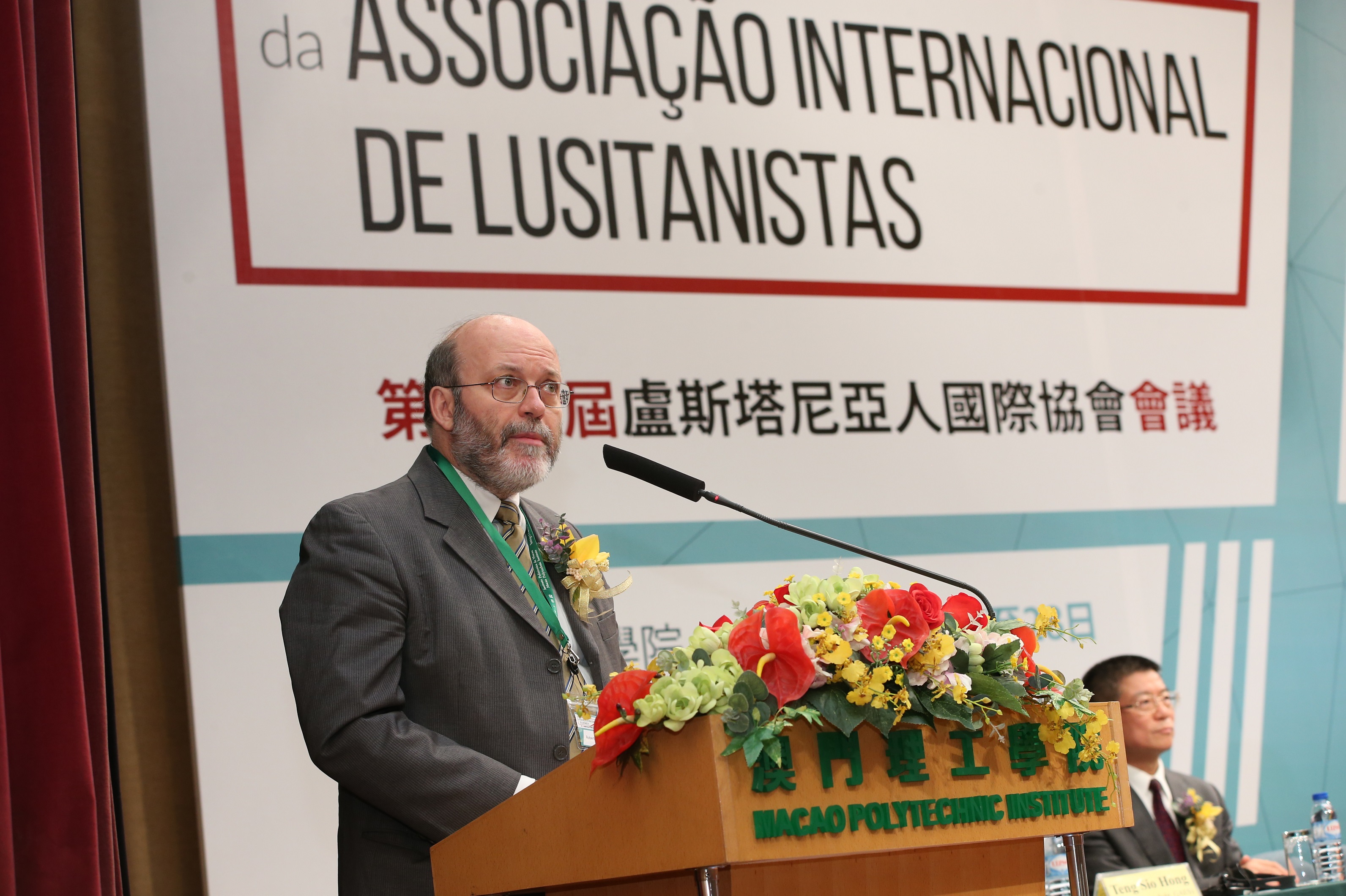 李向玉致辭時表示,盧濟塔尼亞人國際協會第十二屆大會不僅是一個學術性的大會,也是葡語和葡語國家文化界的一次盛大聚會。他感謝大會選擇在澳門,在澳門理工學院舉行。同時感謝盧濟塔尼亞人國際協會榮譽委員會的全體成員,以及所有對本次大會贊助單位澳門基金會、葡萄牙古本江基金會、葡萄牙賈梅士學會、高等教育輔助辦公室,以及旅遊局的支持。李向玉表示,盧濟塔尼亞人國際協會大會今天歷史性地在澳門理工學院舉行,見證葡萄牙語一直是澳門發展戰略中的重要一環。理工在辦學過程中,傳承有一百多年歷史的中葡翻譯課程,並將其進一步發揚光大。同時借助葡語辦學的優勢,開辦葡語學士學位課程和中國與葡語國家經貿關係學士學位課程。今年,又為培養葡語教師,專門開辦了新的丶學士學位葡語課程。此外,積極與葡萄牙高等院校合作辦學當中,理工的學位課程、研究生課程及科研工作已日趨多樣化。李向玉強調,在澳門和中國內地同時開展葡語和葡語文化教學是理工學院戰略規劃的一部分,盧濟塔尼亞人國際協會第十二屆大會在理工學院舉行,這不僅與理工著眼於中國內地以及國際的戰略規劃不謀而合,同時也是因為葡語是發展的根基、辦學的根本。