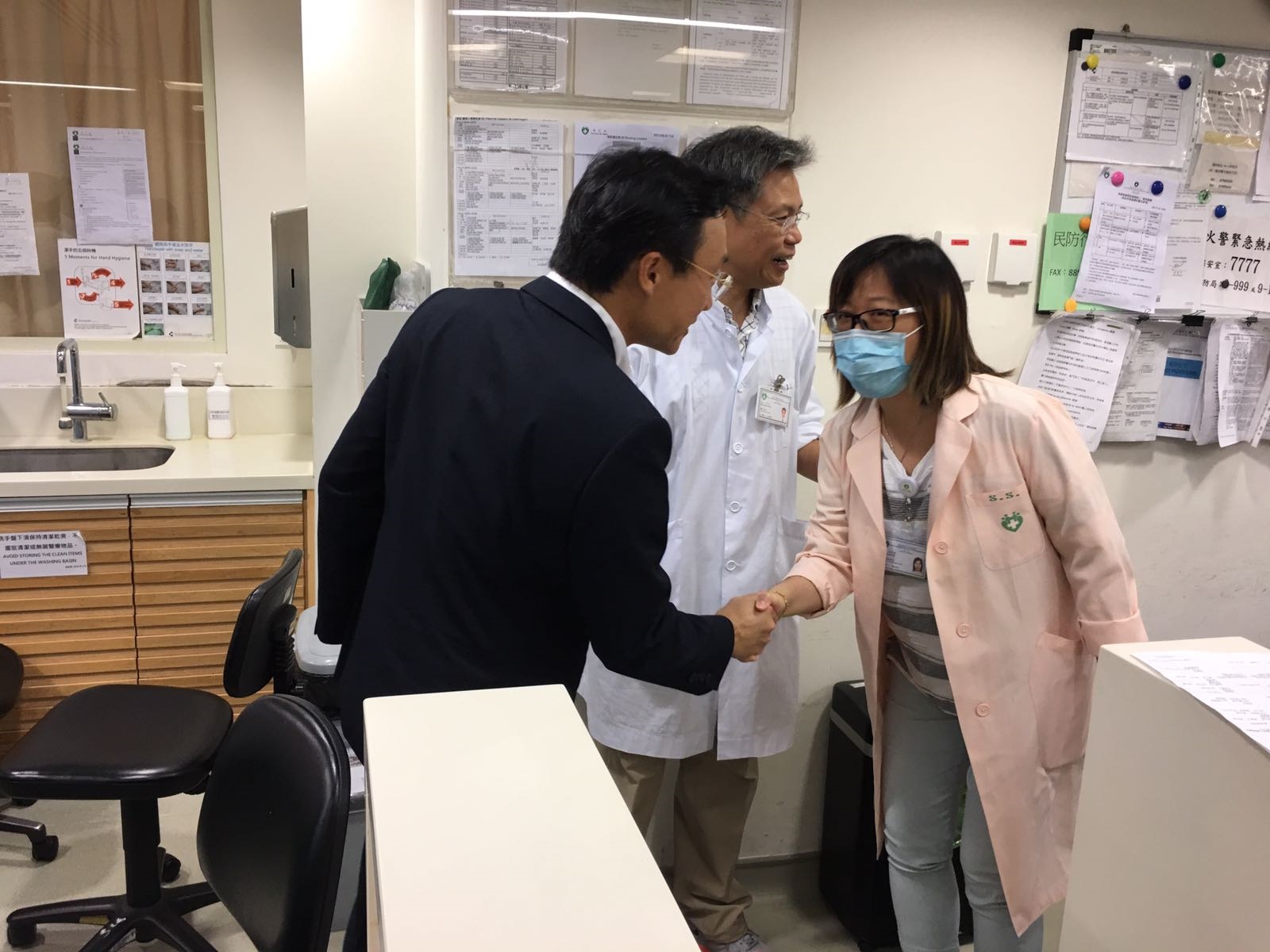 譚俊榮對伯爵綜合醫院在颱風期間增調人手,應對停電及時啓動後備電,保障醫院正常運作,並完成大量救治工作給予肯定,向前綫醫護人員克盡職守、全情投入表示讚揚和慰勉。