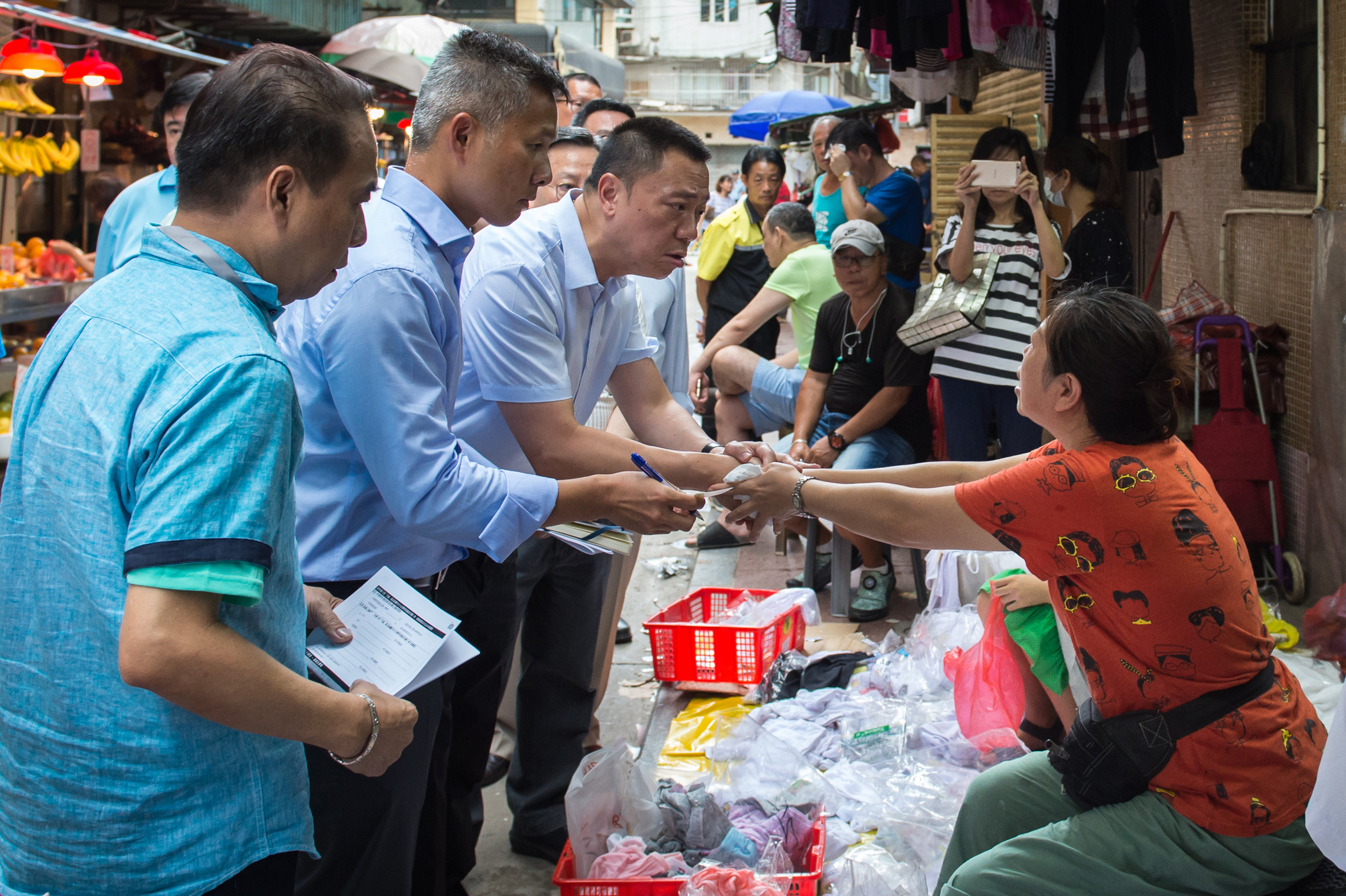 在“8‧23”風災中,澳門半島的下環街區、新橋區、義字五街、筷子基區,路環、氹仔的舊城區等區份均受到不同程度的影響。為實地了解街區中小微企及小販的受災情況,梁維特率經濟局、勞工局、消委會等部門領導,聯同中華總商會理事長高開賢、以及中區南區工商聯會、離島工商業聯合會、北區工商聯會、中小型企業聯合總商會的主要負責人,探訪中小微企及小販。