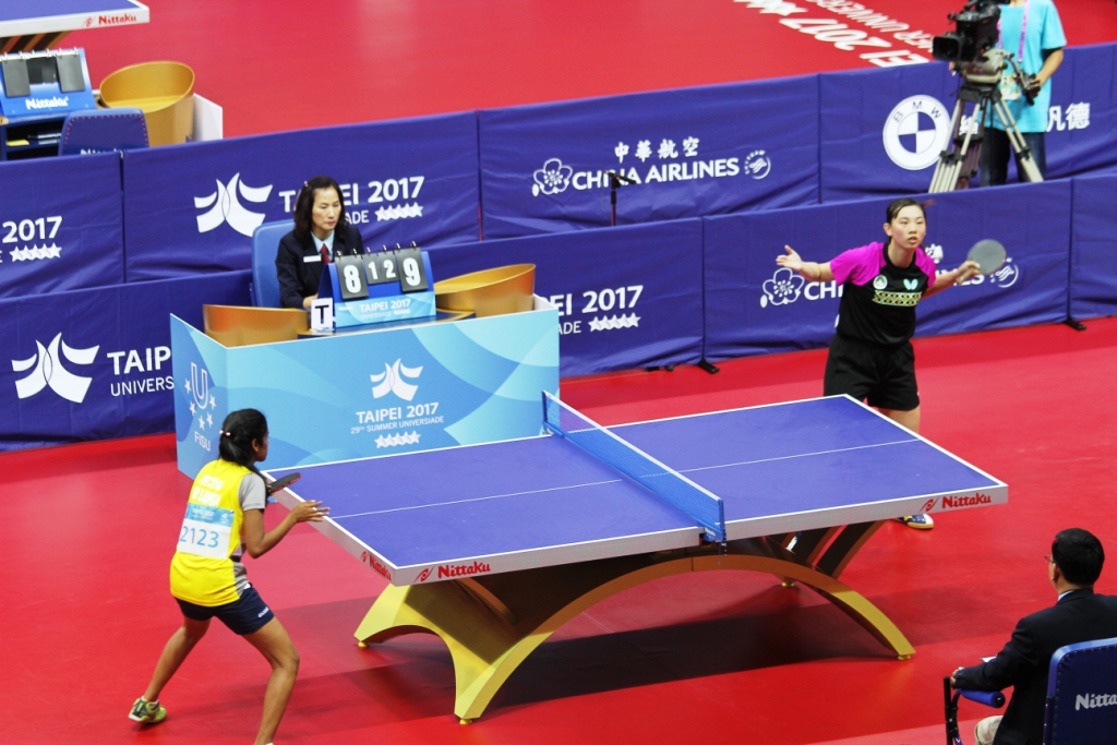 於(27日)第八天的賽事,乒乓球女雙組合鍾穎儀及郭靜儀以局數0比3負於白俄羅斯組合;田徑譚俊樂以6米58完成跳遠項目的賽事;至於武術方面,於女子長拳項目李禕表現出色,以9.52的分數力壓俄羅斯及日本選手,為中國澳門在世大運取得了首面金牌,朱自偉以男子長拳第八名完成賽事,黃俊華在男子南拳及南棍全能方面則以南棍成績排名第八,於29日將繼續出戰南拳全能項目。