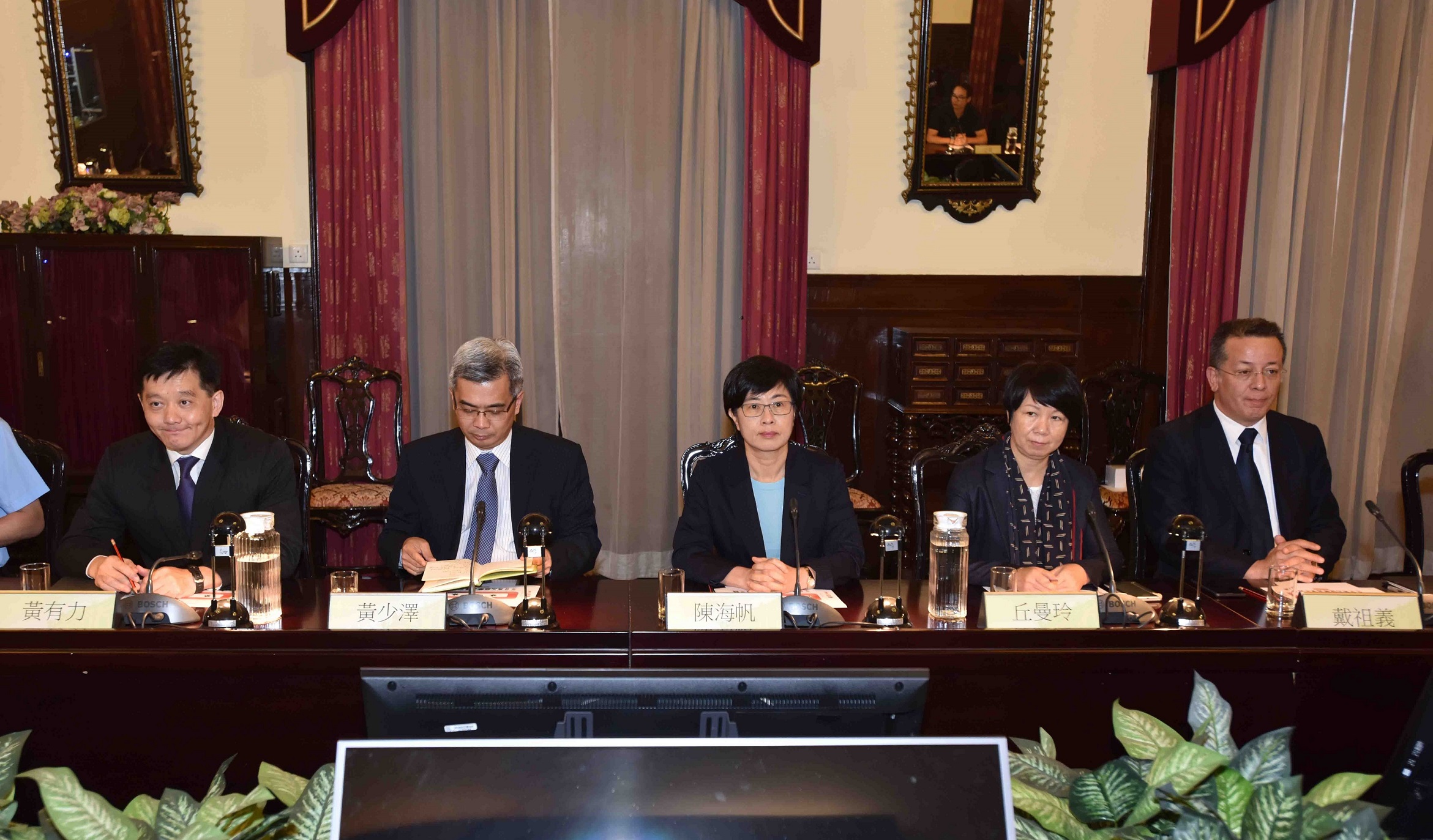 出席會議的還包括:海關關長黃有力等政府相關範疇部門的領導,北區副召集人李從正、梁彥邦,中區副召集人陸南德、徐達明、袁小菱,離島區副召集人何凱玲、吳觀祥、施妮娜,以及各區社諮會十名委員。