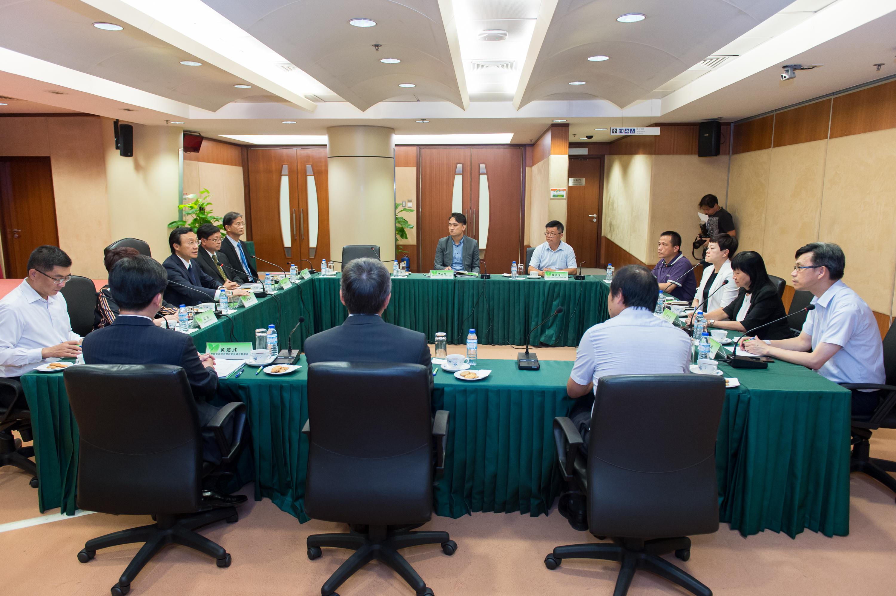 社會文化司司長譚俊榮今(29)日率教育暨青年局局長梁勵、副局長老柏生及多位主管,與澳門中華教育會會長何少金、理事長陳虹,副理事長鄭杰釗、王國英等舉行會議,聽取教育會對颱風“天鴿”政府善後工作,以及未來重大災害應對機制的意見。