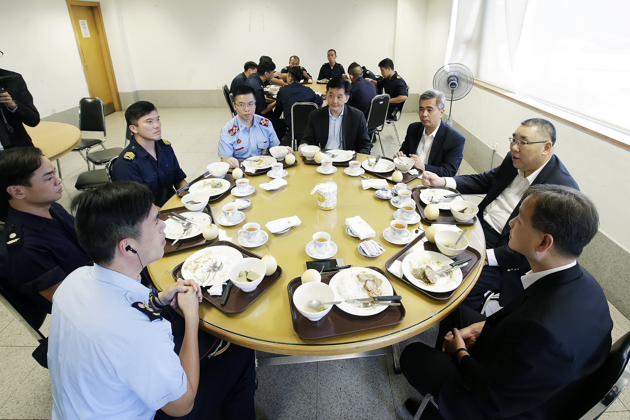 另外,行政長官分別視察了治安警察局、消防局及海關的裝備,再次向黃少澤司長和保安部隊領導表示要盡快完善,增加配備。