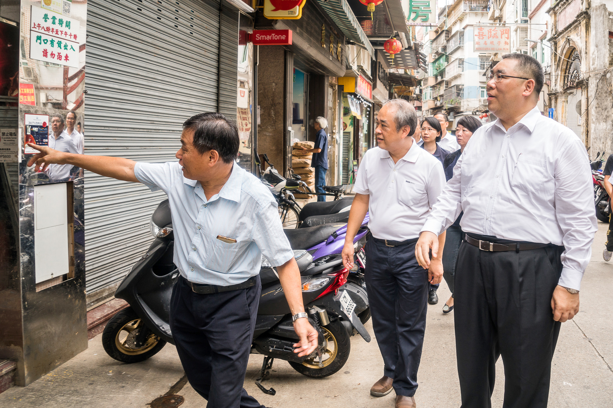 行政長官崔世安今(7)日上午前往十月初五街一帶視察,向居民和商舖了解風災善後和恢復情況。
