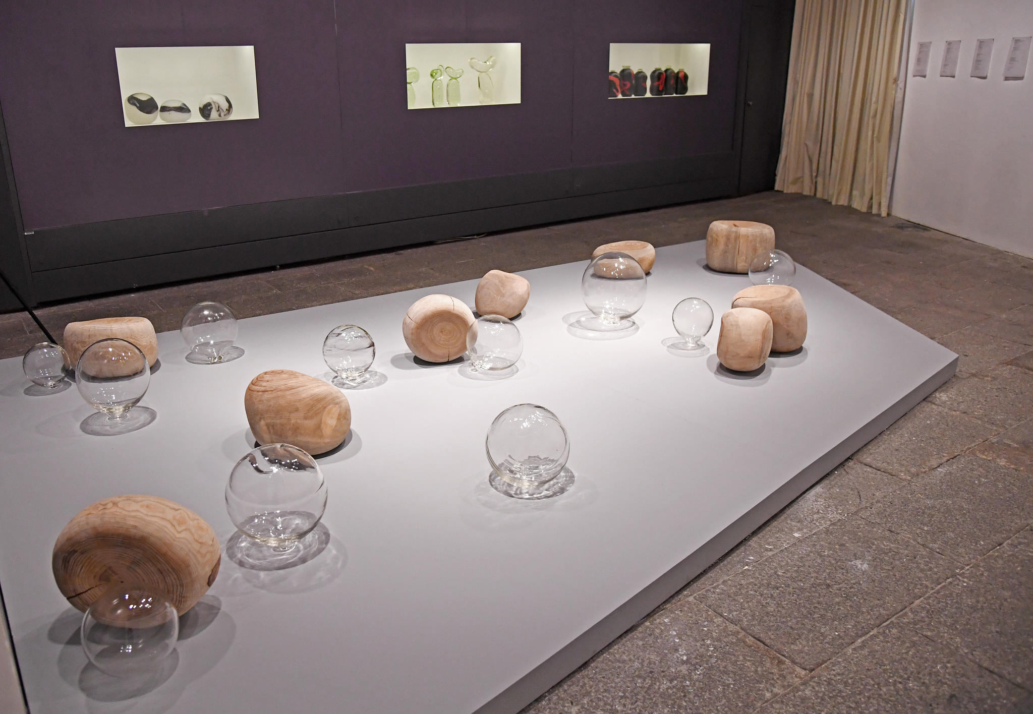 是次展覽展出王鈴蓁二十件(套)玻璃裝置作品。她的作品蘊涵東方文化元素,其中以二十八顆形狀大小不一的黑色玻璃石頭組成的作品“詩石”,靈感來自佛教《十牛圖》的頌詩和中國聲韻學。二十八顆排成四行各七顆玻璃石頭,相應七言絕句的格律,並畫線條圍繞作品而成大圈代表平聲,畫個小圓圈代表仄聲,每一圈就是一個當下,一石一韻,無論是書法藝術還是吹製玻璃同樣需要一氣呵成,過程中不能停頓也無從逆轉,呼應藝術家對“活在當下”的體會。