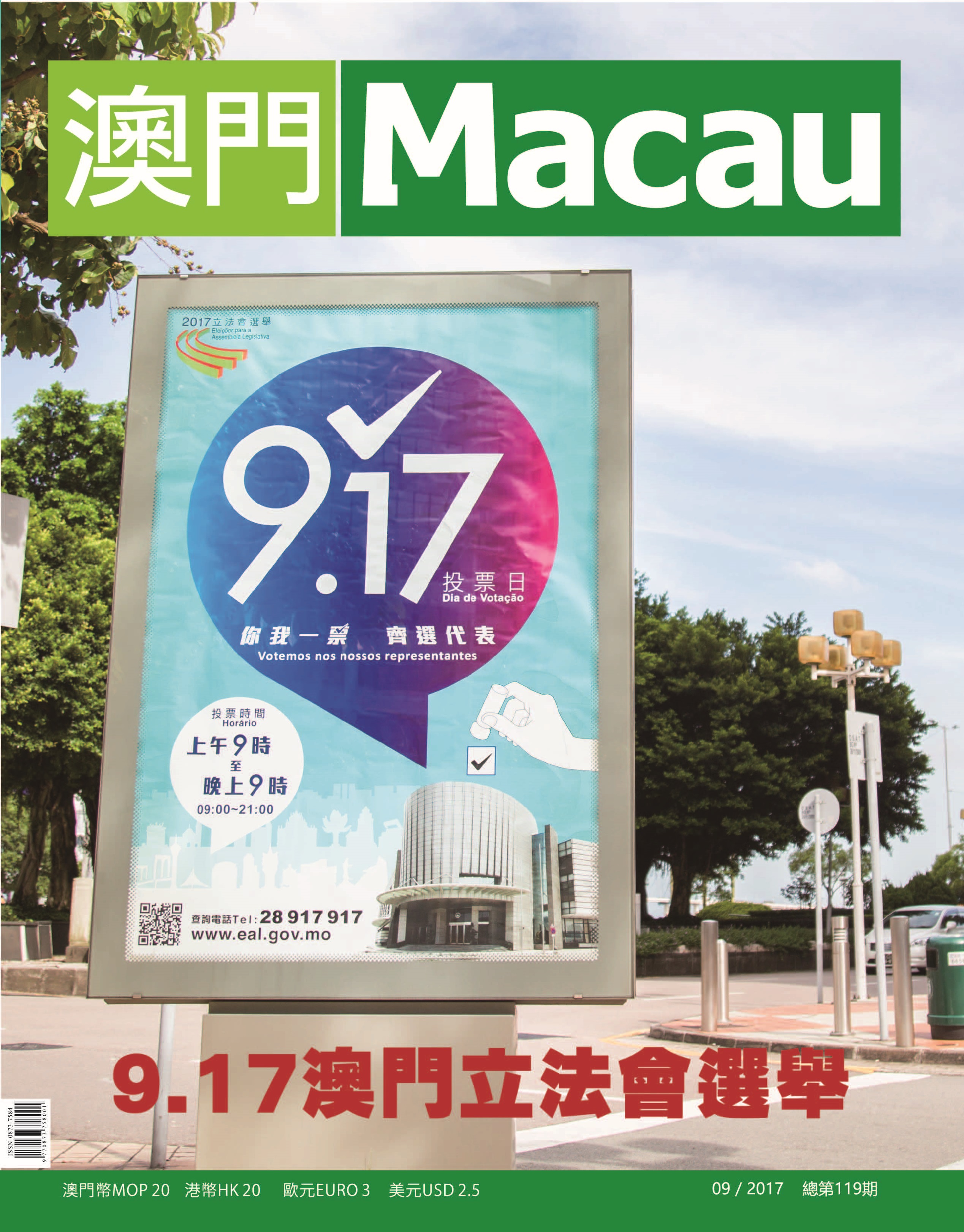9月17日為澳門特別行政區第六屆立法會選舉日。今期澳門雜誌特別製作了《9.17澳門立法會選舉》專題,向讀者介紹立法會在澳門政制中的角色,以及其組成和選舉制度。更專訪澳門特區政府行政法務司司長陳海帆,親述澳門政制的發展,以及修訂《澳門特別行政區立法會選舉法》,完善立法會選舉提供的法律基礎的工作。