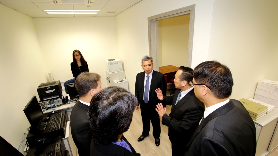 為迅速應對發生於北區的跨境販毒以及其他毒品罪案,司法警察局增設毒品罪案調查處望廈分站,有關設施的裝修工程已經完竣,並於今(12)日啟用。保安司司長黃少澤、警察總局局長馬耀權、保安司司長辦公室主任張玉英一行,在司警局局長周偉光、兩位副局長薛仲明及杜淑森陪同下視察望廈分站的運作情況。
