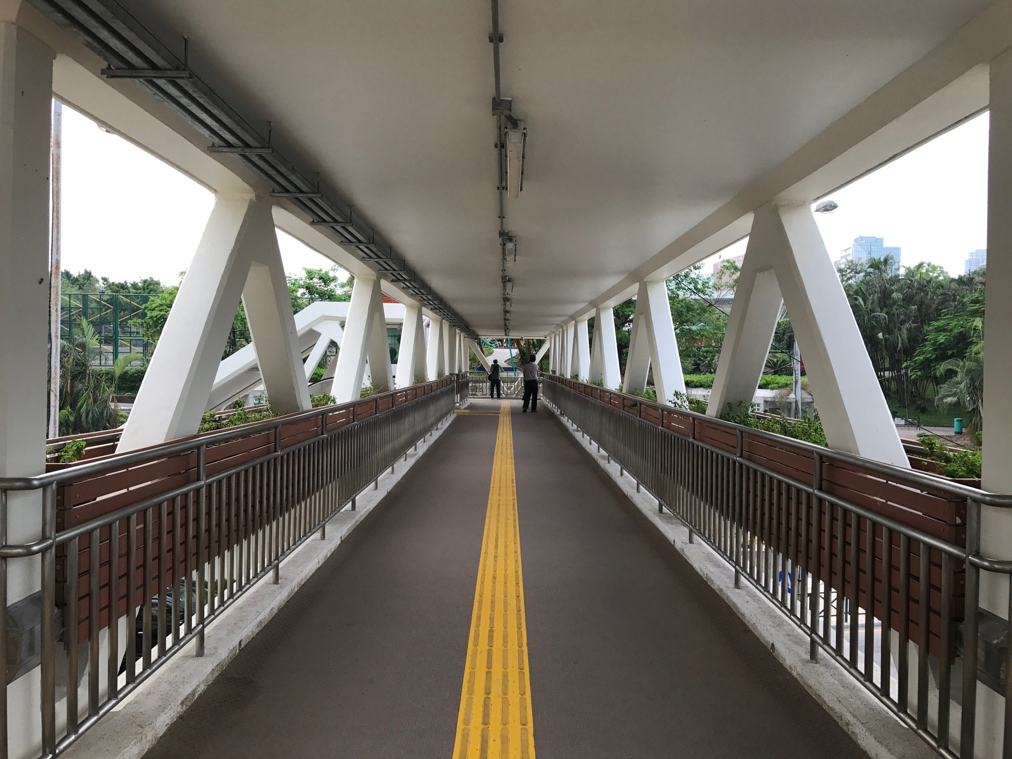 何賢紳士大馬路行人天橋是市民進出紀念孫中山市政公園的主要過路設施,由於過去有關天橋的無障礙坡道佔地較大及長,對使用輪椅人士體能要求較高。為進一步改善無障礙環境及合理利用空間,民署拆除了天橋兩條無障礙坡道,於天橋落腳點兩側各設置一部升降機,以方便有需要人士;同時,翻新行人天橋外觀,增加綠化設施並美化行人天橋的立面造型。