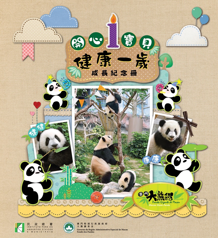 澳門出生的一對大熊貓寶寶“健健、康康",已於六月二十六日迎來牠們的一歲生日。為紀念大熊貓寶寶由出生至今的點點滴滴,民政總署聯同大熊貓基金合作出版《開心寶貝•健康一歲 成長紀念冊》,中、葡文版於優惠期內以七折發售,數量有限,欲購從速。