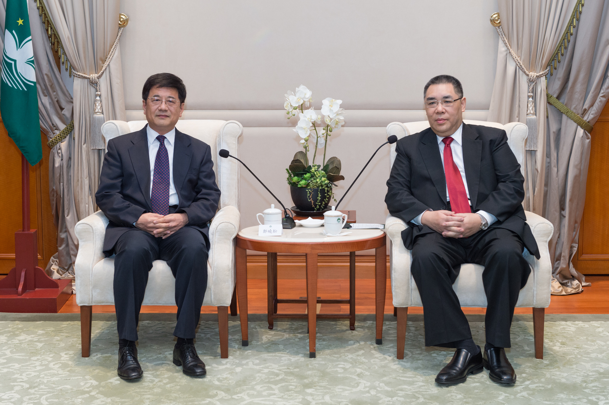 鄭曉松表示,很高興來到澳門工作,從過去的職務中多次與行政長官見面,同時與特區政府保持工作上的實務合作,了解到澳門回歸祖國後的發展歷程,在行政長官帶領下,經濟社會穩定,邁出重要的發展步伐,反映行政長官具有開拓進取的精神。