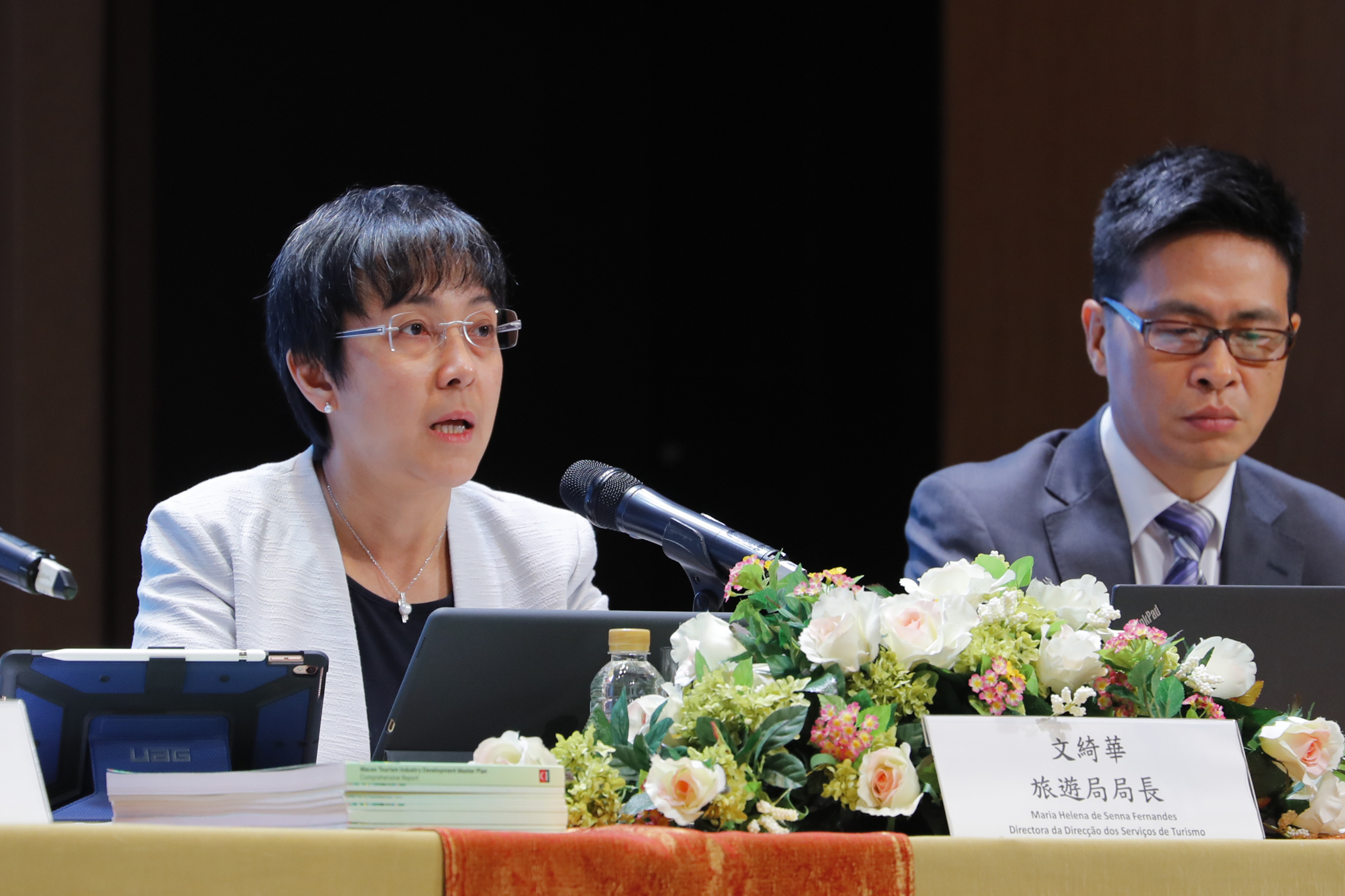 旅遊局今天召開記者會,介紹《澳門旅遊業發展總體規劃》最終方案的內容,旅遊局局長文綺華、副局長謝慶茜及程衛東等出席。