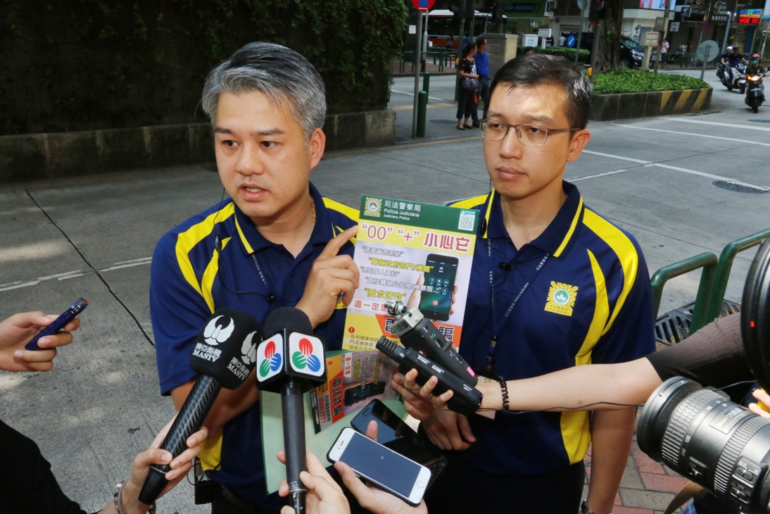 假冒本澳政府部門人員的電話詐騙案近日又再飈升,因應受騙的有不少是年輕人,司法警察局展開一連串針對性宣傳,包括特別設計一個簡單易記的防電話詐騙口號“‘00’‘+’小心它”,提醒市民接到來電顯示為“00”或“+”時須特別小心,並在本澳各區年輕人的聚腳點進行宣傳,與大專院校及學生會合作舉辦防騙專題講座,提高市民、尤其是年輕人的防騙警覺性。同時,早前司警局亦與廣東省反詐騙中心及香港警方反詐騙協調中心進行會議,商討共同打擊及預防電話詐騙等方面的合作。