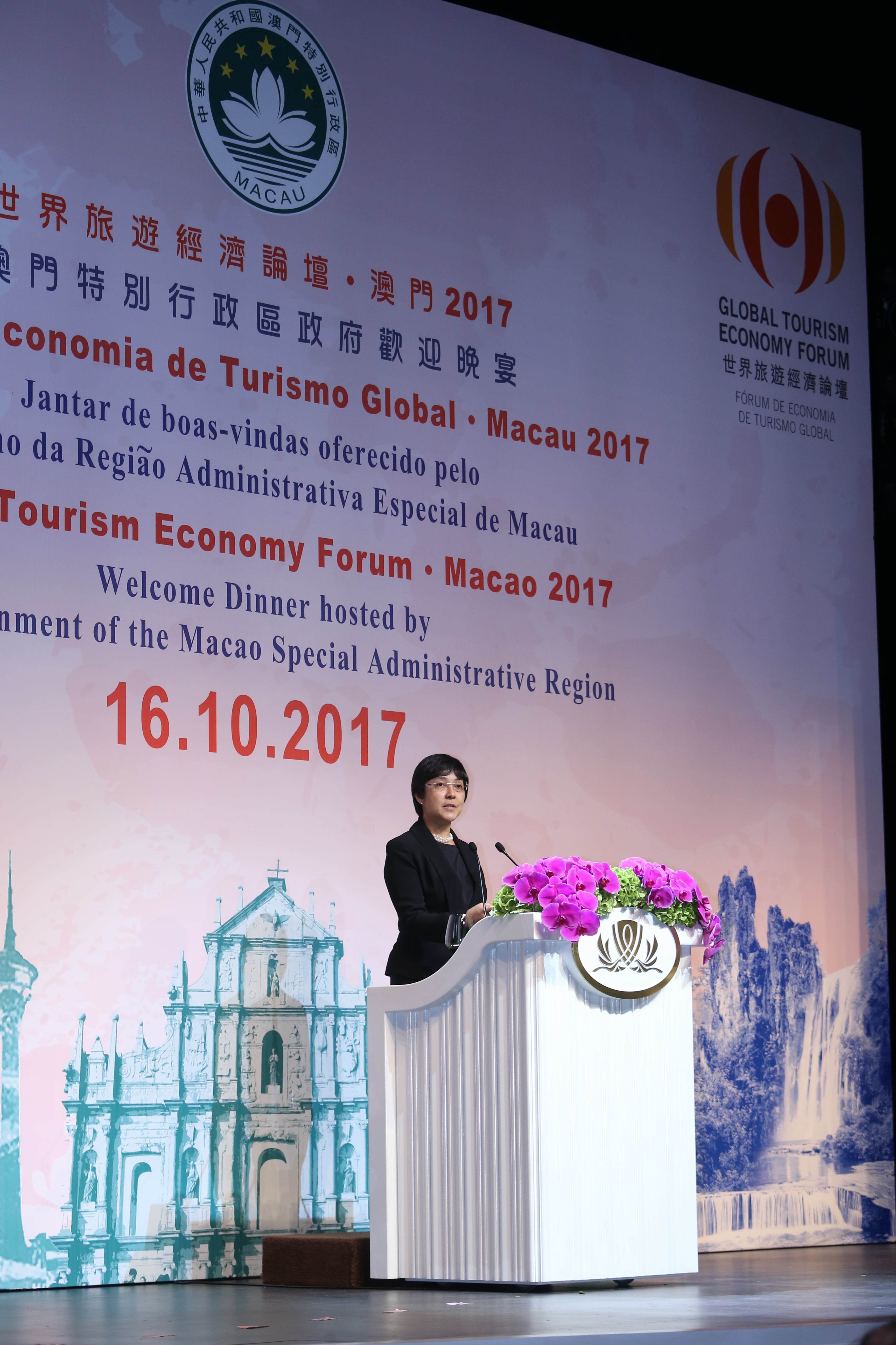 澳門特別行政區政府旅遊局局長兼世界旅遊經濟論壇副主席文綺華致歡迎辭時表示,‘作爲旅遊城市,澳門的盛事活動一個接一個,我們剛剛成功舉辦了2017年亞太旅遊協會 (PATA) 旅遊交易會及其理事會會議,現正舉行“國際音樂節”,今天又迎來全球旅遊業界的年度盛事——“世界旅遊經濟論壇”,再過兩天“國際貿易投資展覽會”便開幕,還有“格蘭披治大賽車”、“國際馬拉松”等。這些旅遊、文化、體育盛事活動,為居民、旅客提供了深度體驗的機會,也為旅遊業界創造了緊密協作的契機。’她又表示將繼續與旅遊業界精誠合作,努力將澳門打造成世界級的旅遊休閒勝地。